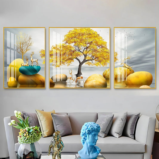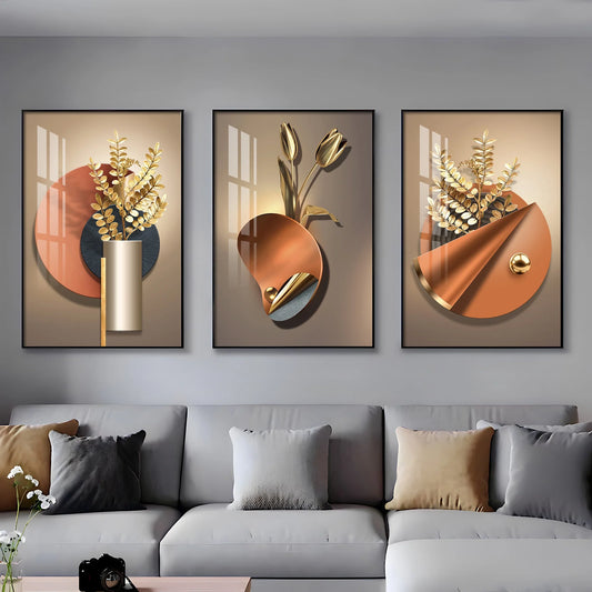 Golden Glory Premium Acrylic Wall Art (Set of 3)