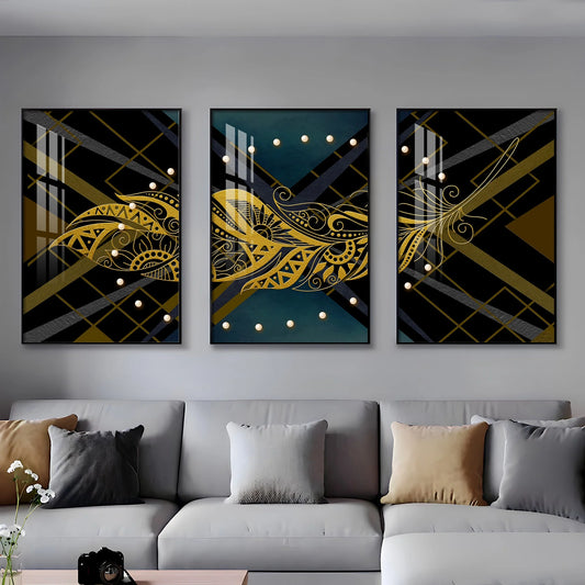 Golden Plume Traid Premium Acrylic Wall Art (Set of 3)
