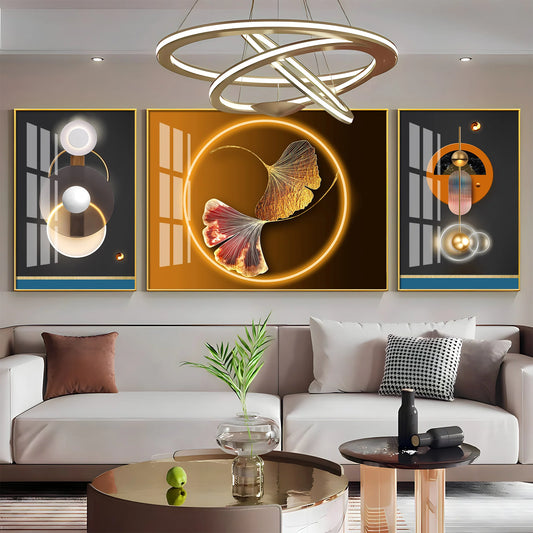 Glowing Biloba Leaves Premium Acrylic Wall Art (Set of 3)