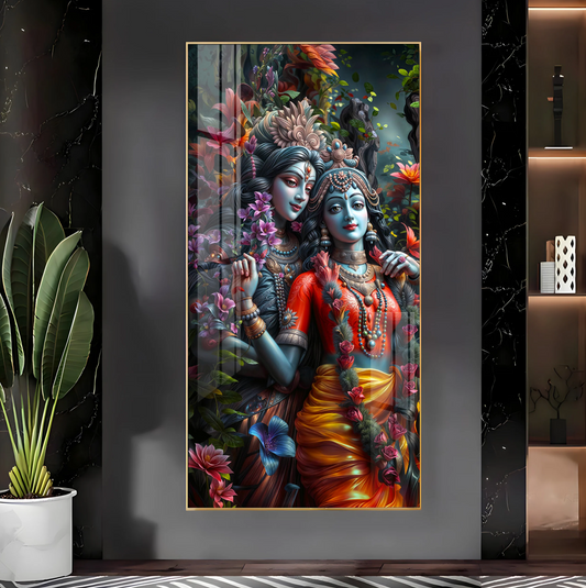 Radha Krishna Love Premium Acrylic Vertical Wall Art