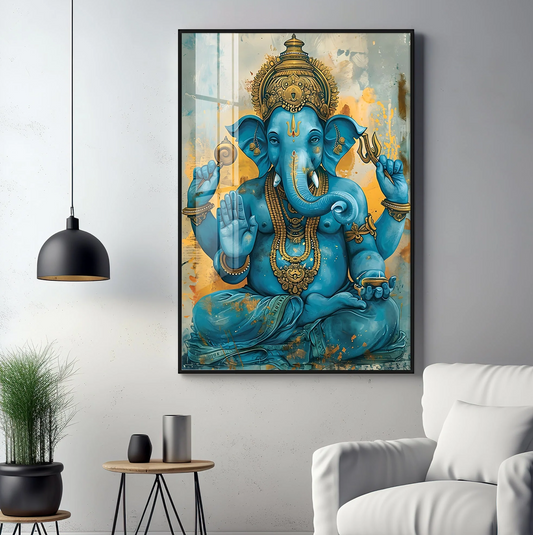 Majestic Blue Ganesha Premium Vertical Acrylic Wall Art