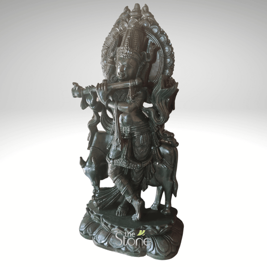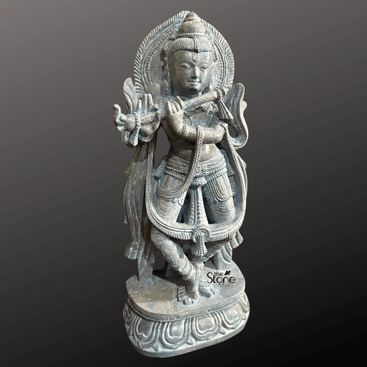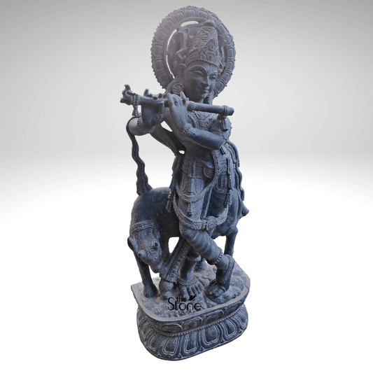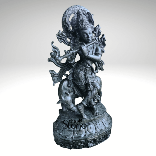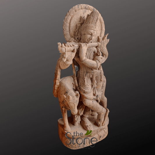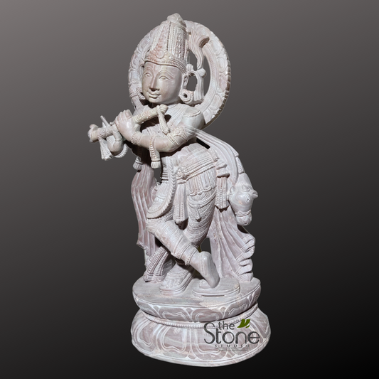 Krishna Sculpture with Flute in Rajasthani Stone 2ft