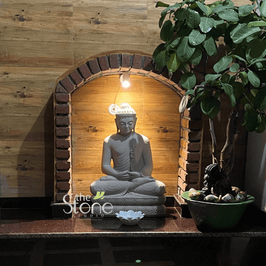 Stone Medicine Buddha Statue With Alms Bowl 18β³