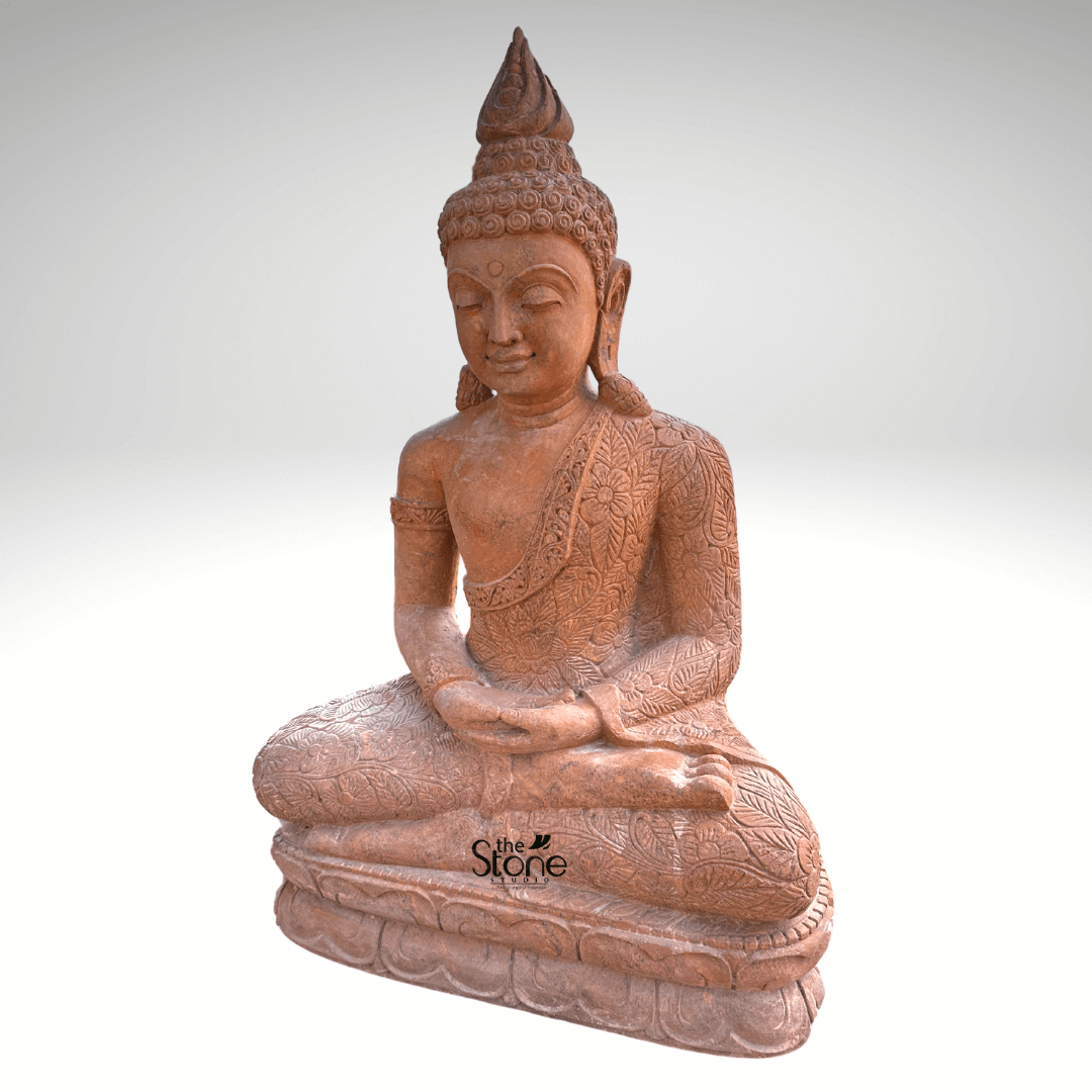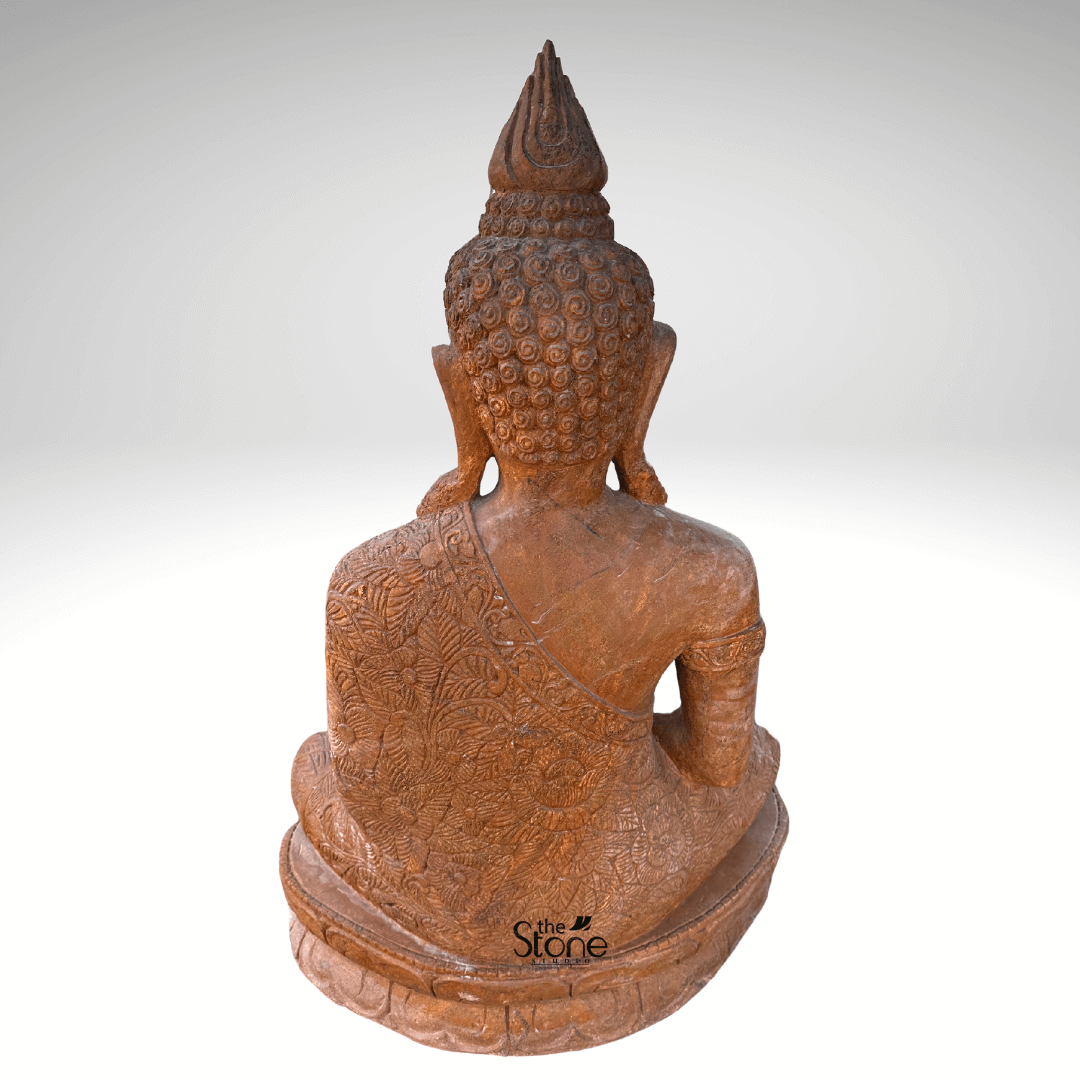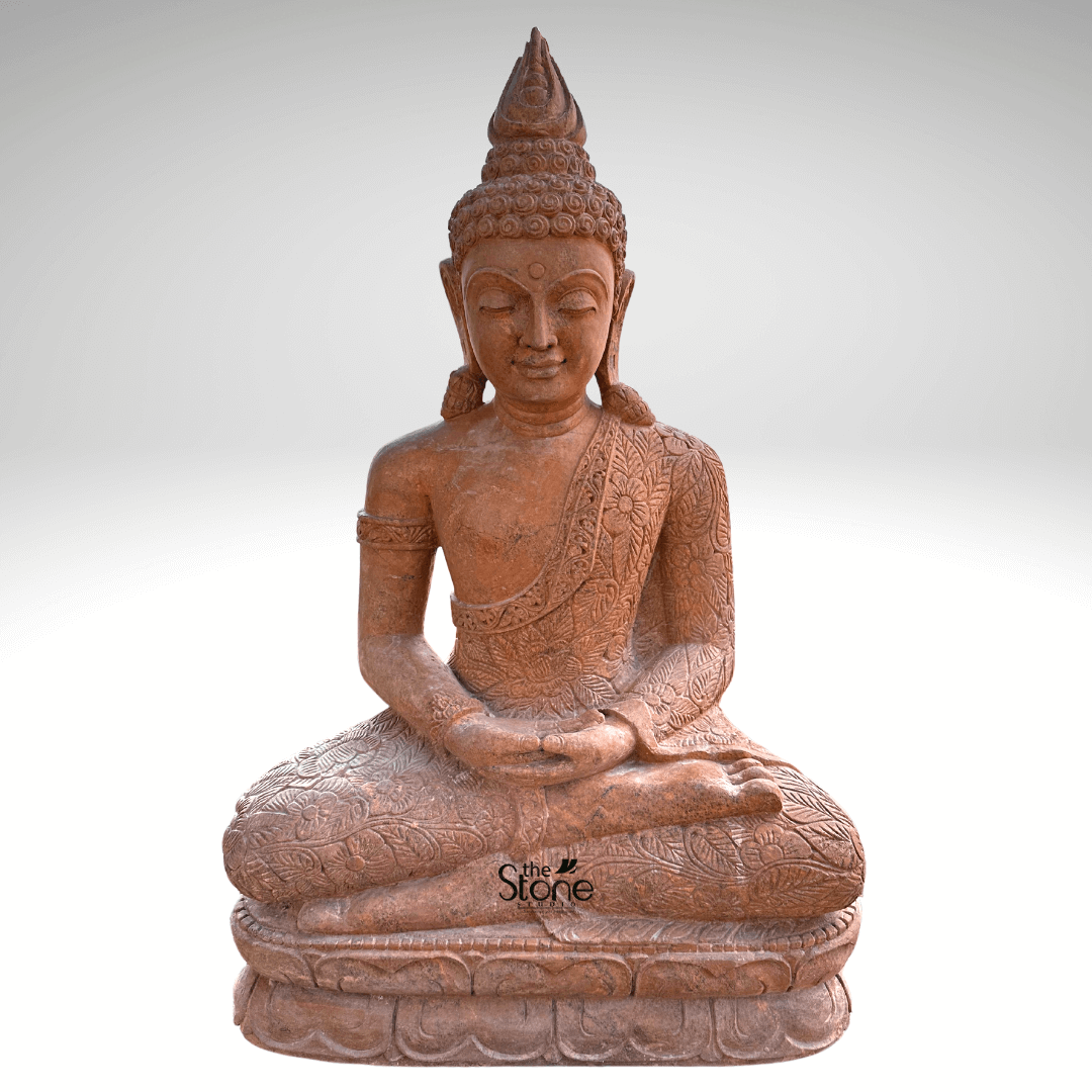 The material used in it is brown sandstone. This sculpture is wonderfully crafted by our best artisans. For more such statues browse our website. If you still don’t get what you want, our artisans will craft your specified designs of a 3.5 feet garden Buddha sculpture with utmost care and love.