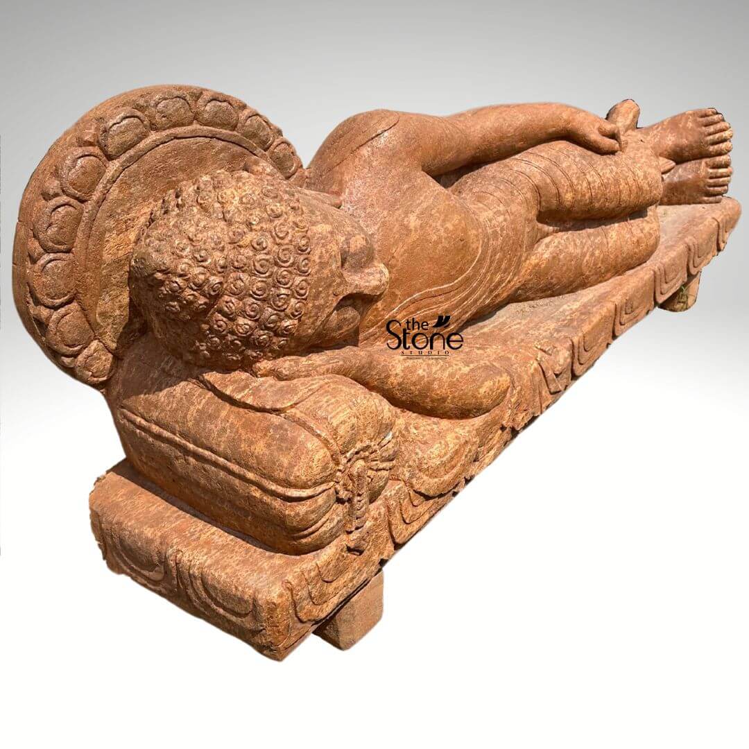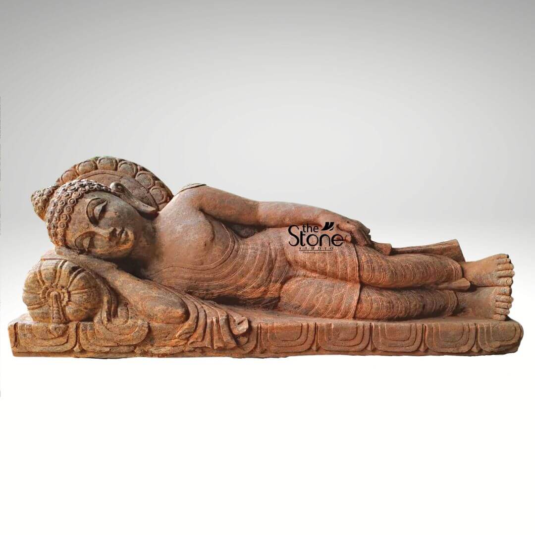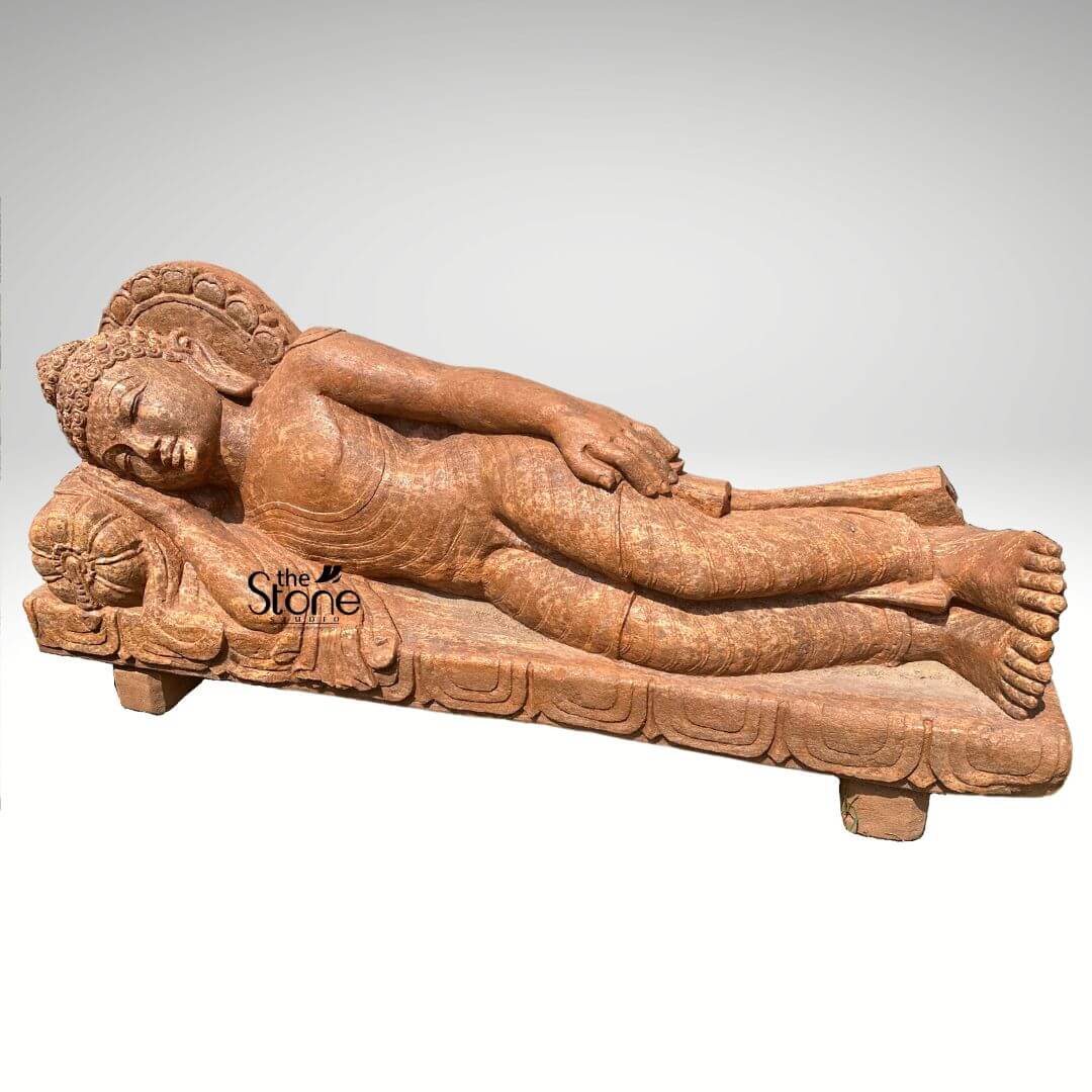 The material used in it is Brown sandstone. Our best artisans wonderfully craft this sculpture. For more such statues browse our website. If you still don’t get what you want, our artisans will craft your specified designs of the 3.5 feet sleeping Buddha statue with utmost care and love.