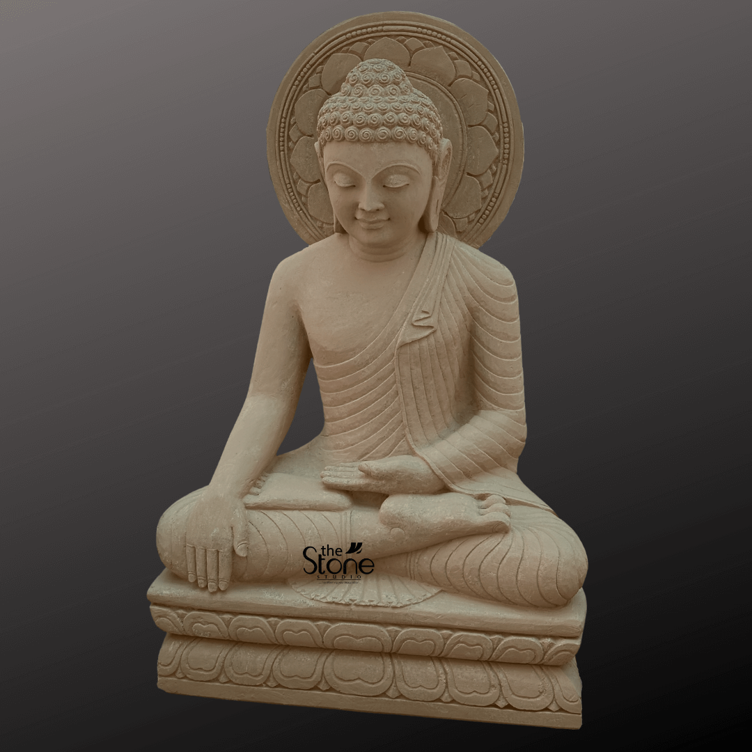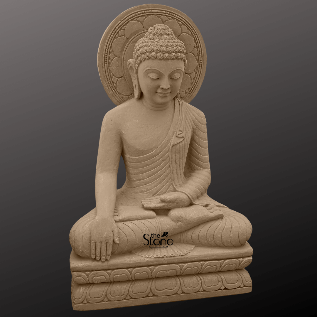 The material used in it is sandstone. This sculpture is wonderfully crafted by our best artisans. For more such statues browse our website. If you still don’t get what you want, our artisans will craft your specified designs of the 3 feet Bhumisparsha Buddha statue with utmost care and love.