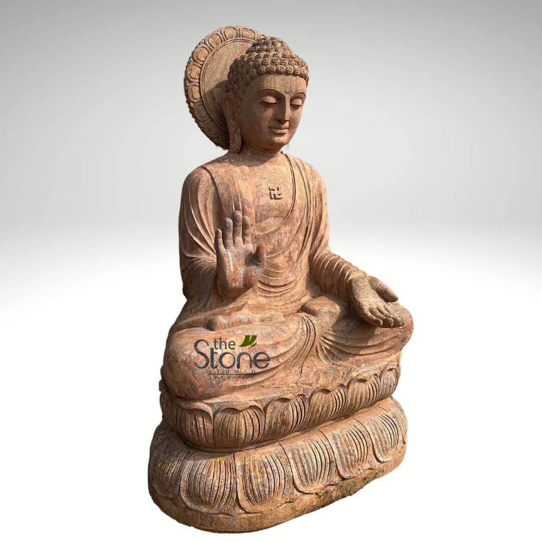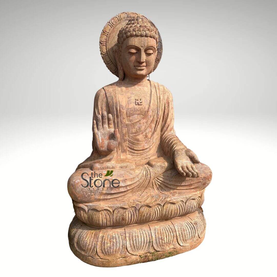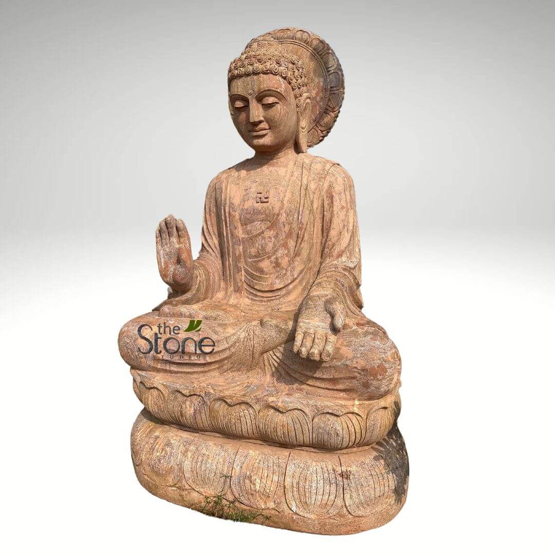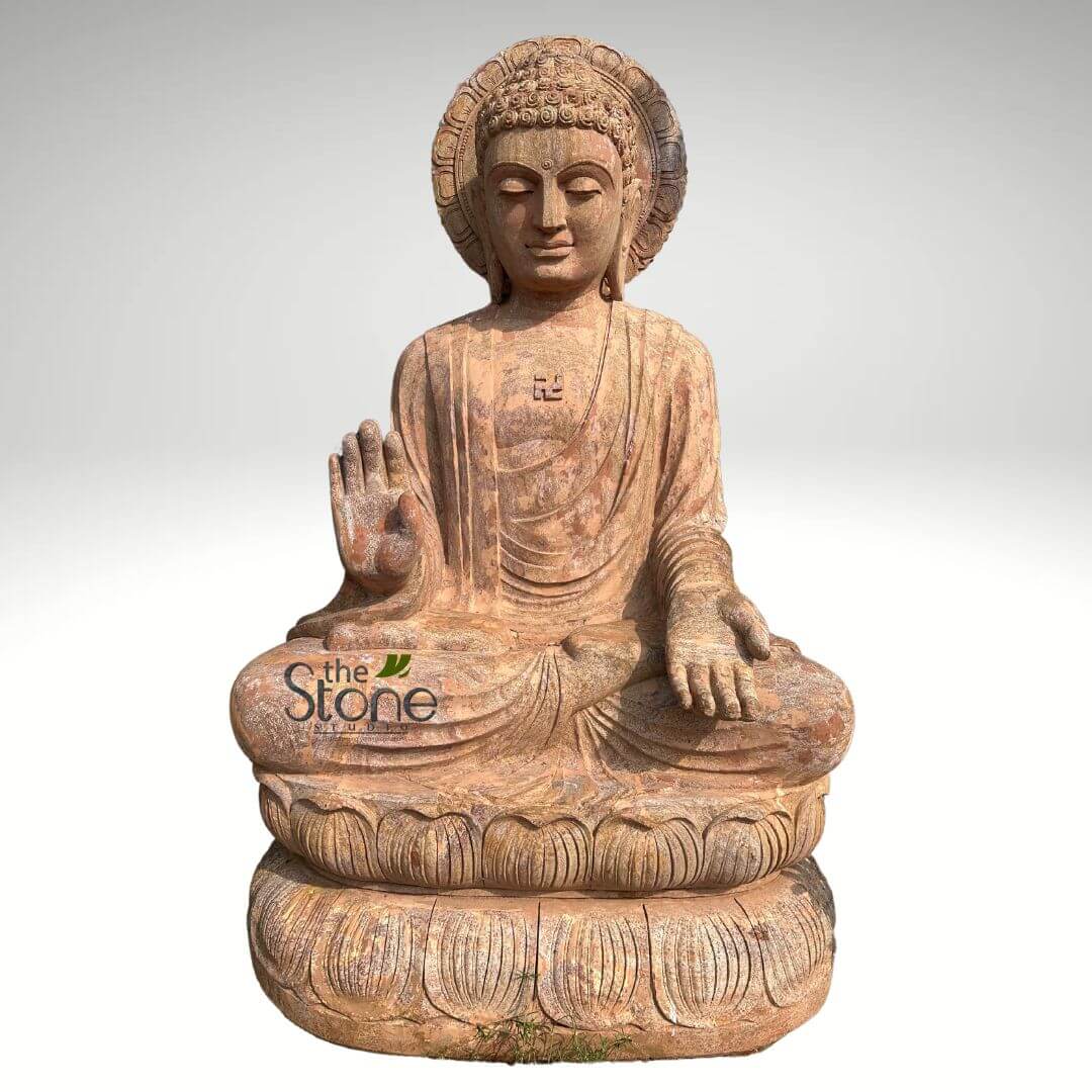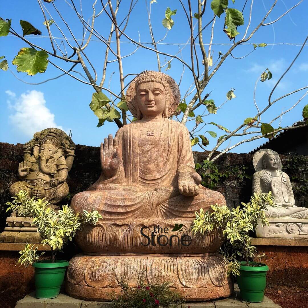The material used in it is brown sandstone. This sculpture is wonderfully crafted by our best artisans. For more such statues browse our website. If you still don’t get what you want, our artisans will craft your specified designs of the 8 foot Buddha Statue with utmost care and love.
