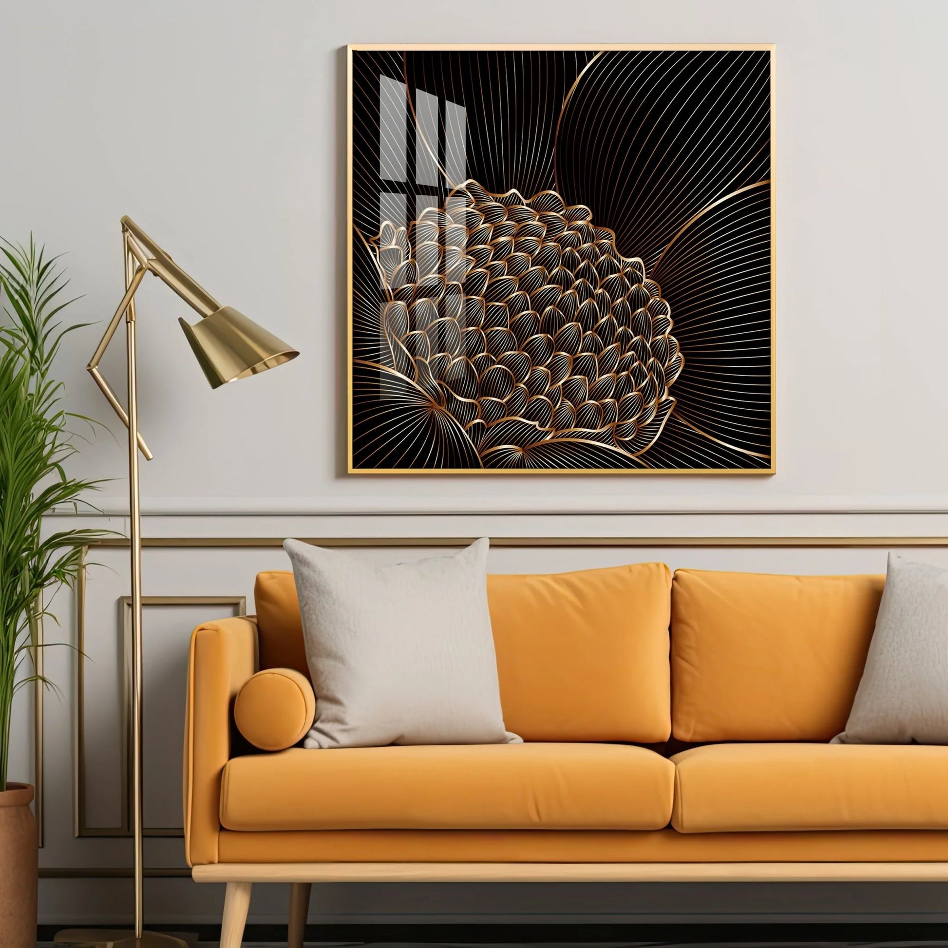 Abstract Black Flower Luxury Crystal Square Wall Art