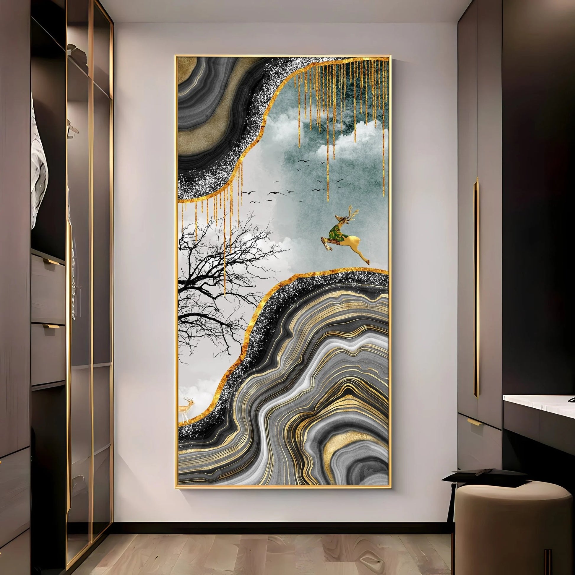Abstract Golden Art Of Deer Premium Acrylic Vertical Wall Art