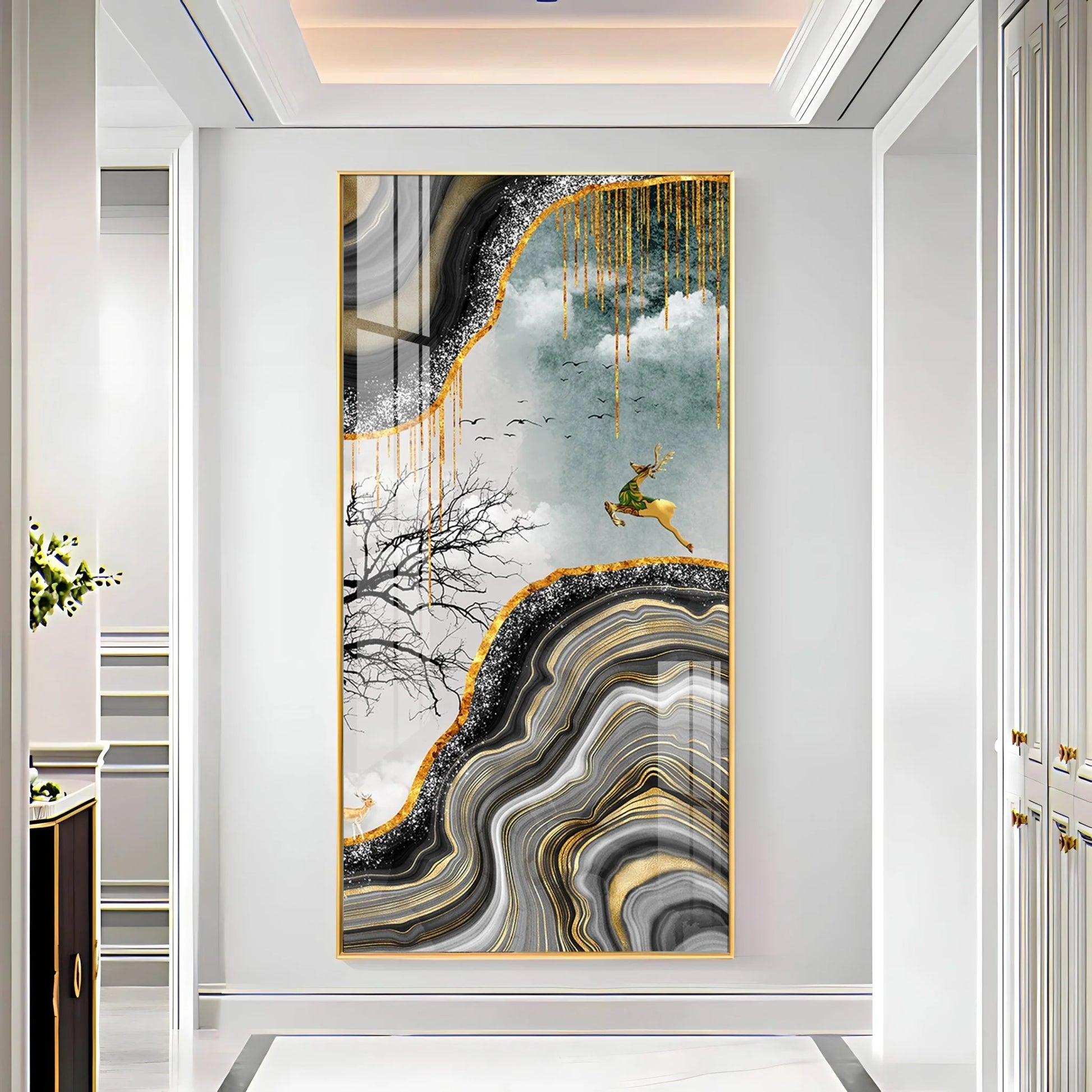 Abstract Golden Deer Luxury Crystal Wall Art
