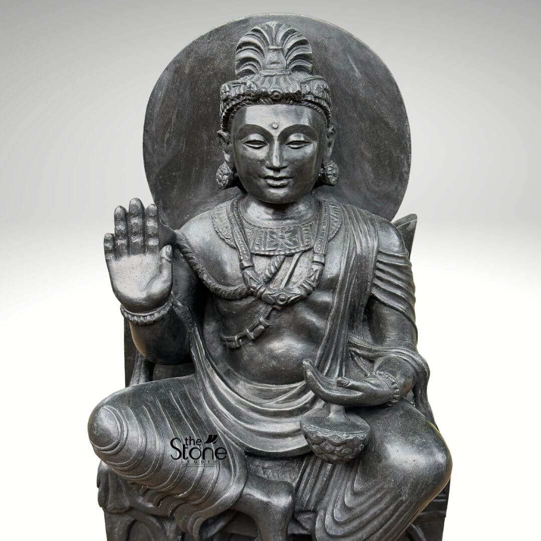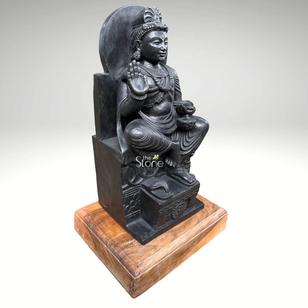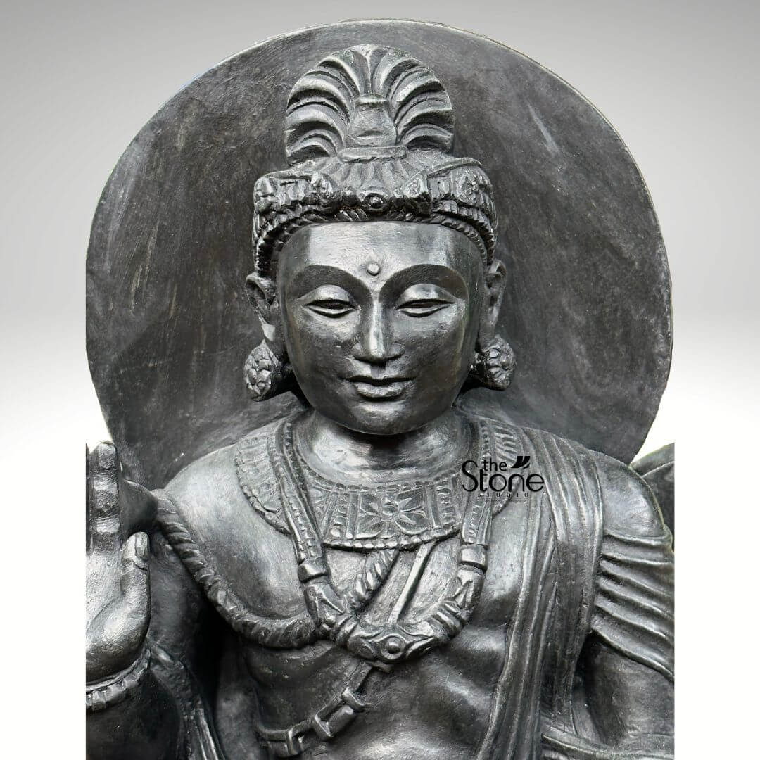 The material used in it is Blackstone. Our best artisans wonderfully craft this sculpture. For more such statues browse our website. If you still don’t get what you want, our artisans will craft your specified designs of an Avalokiteshvara Gandhara statue with utmost care and love.