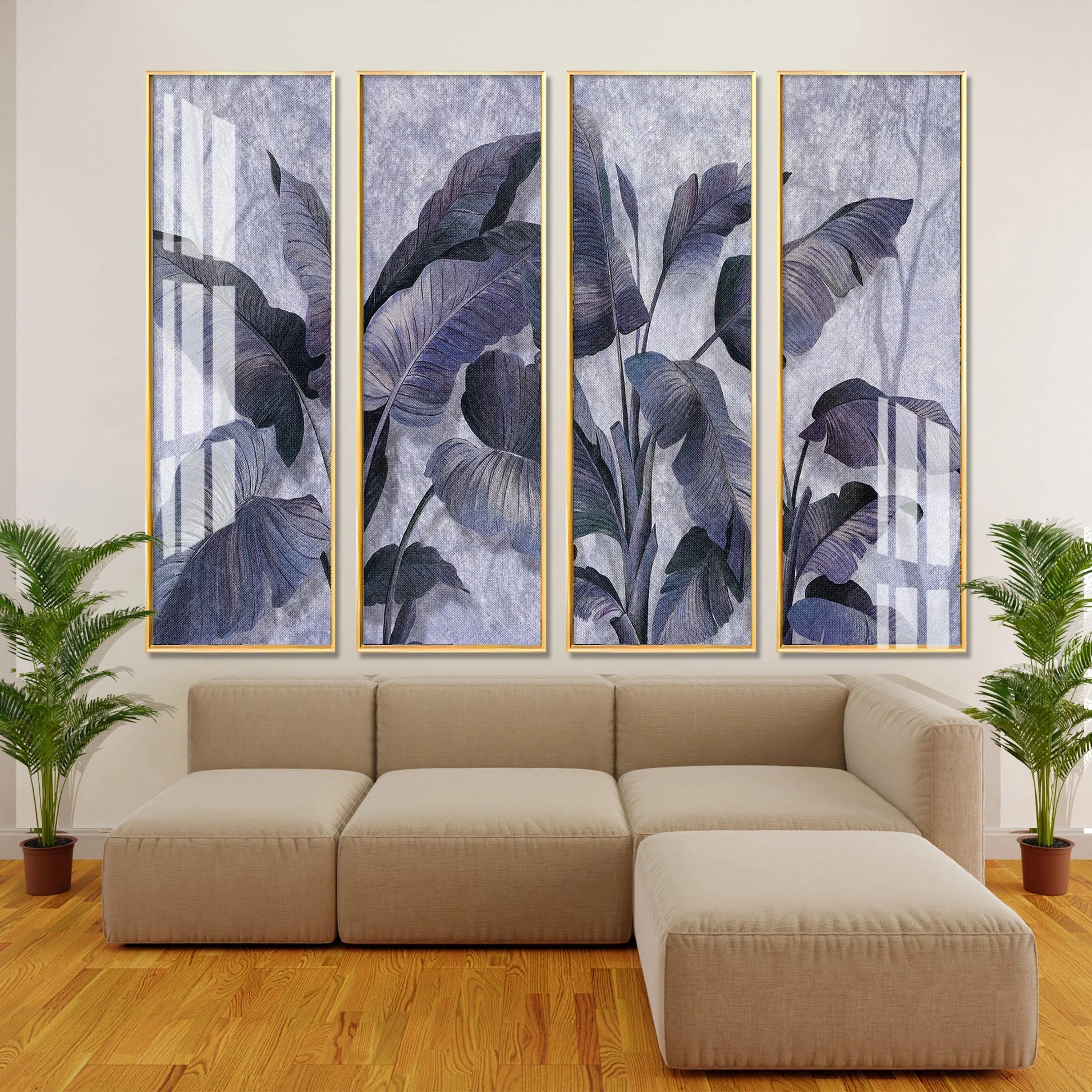 Banana Leaves Premium Acrylic Vertical Wall Art (set of 4)