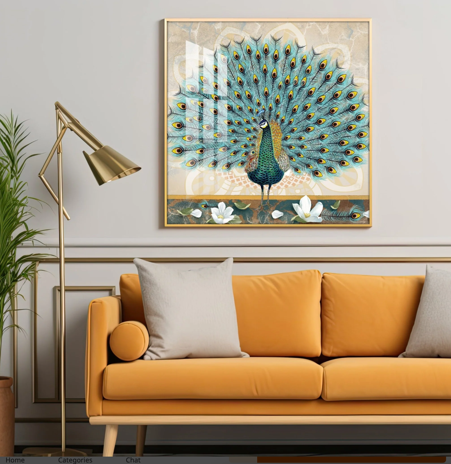 Beautiful Peacock Premium Acrylic Square Wall Art