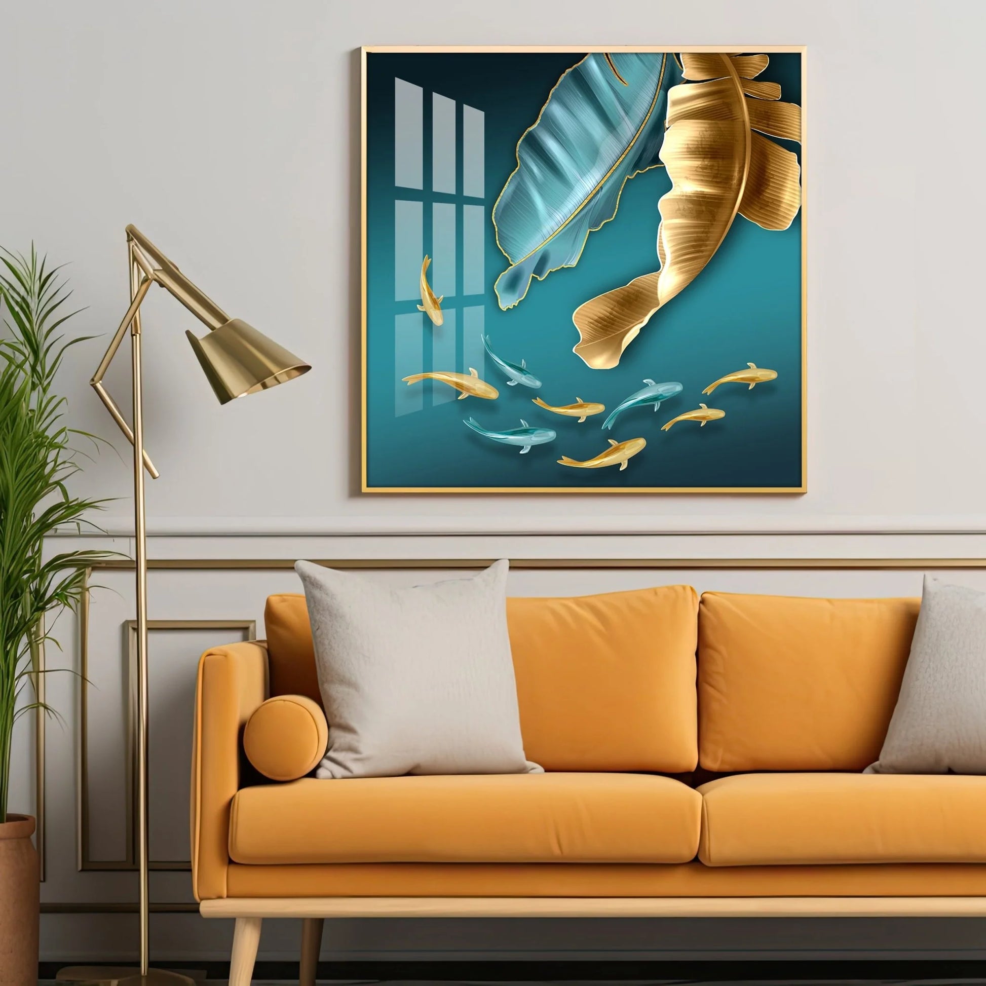 Beautiful Ropical Leaf Luxury Crystal Square Wall Art