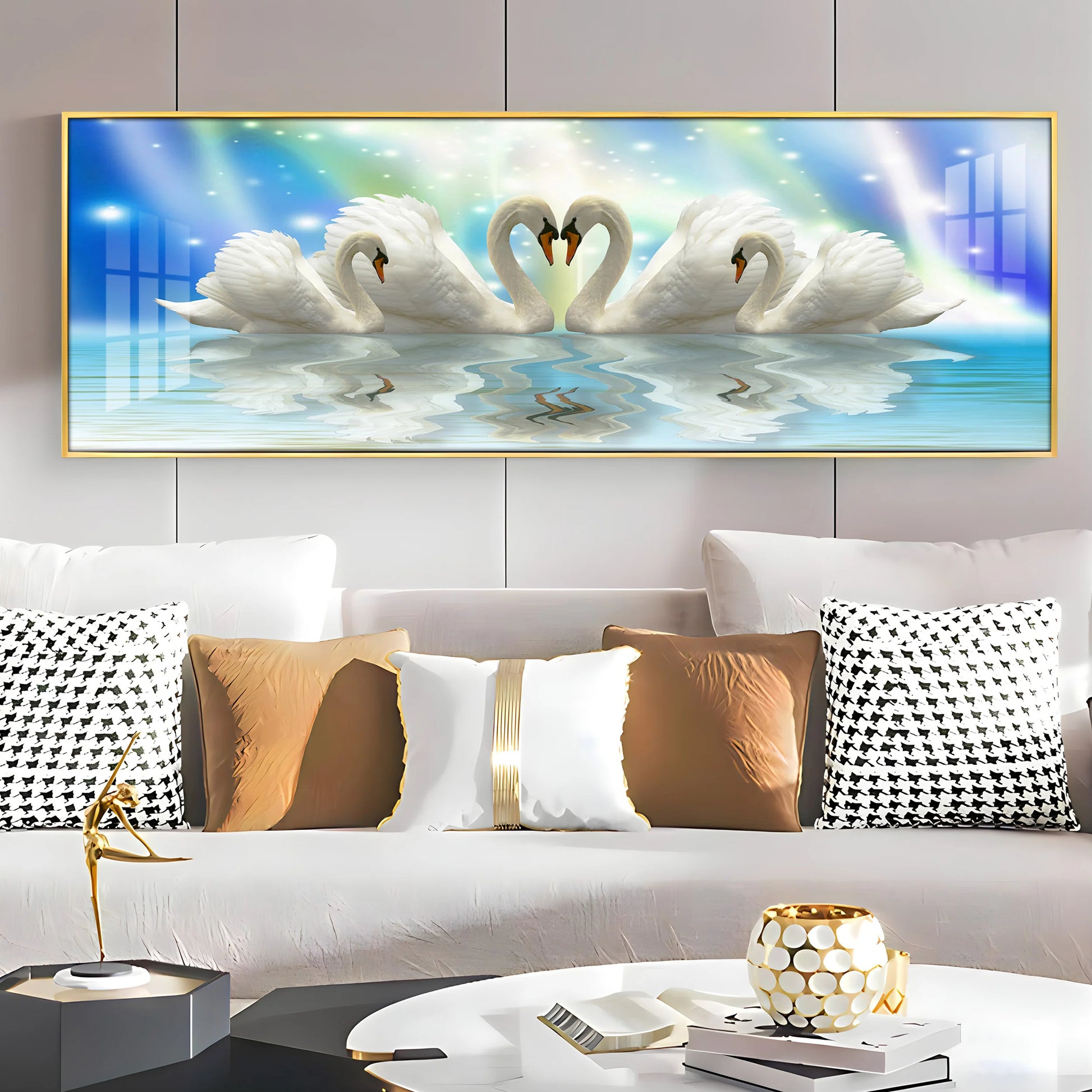 Beautiful Swan Family Premium Acrylic Horizontal Wall Art