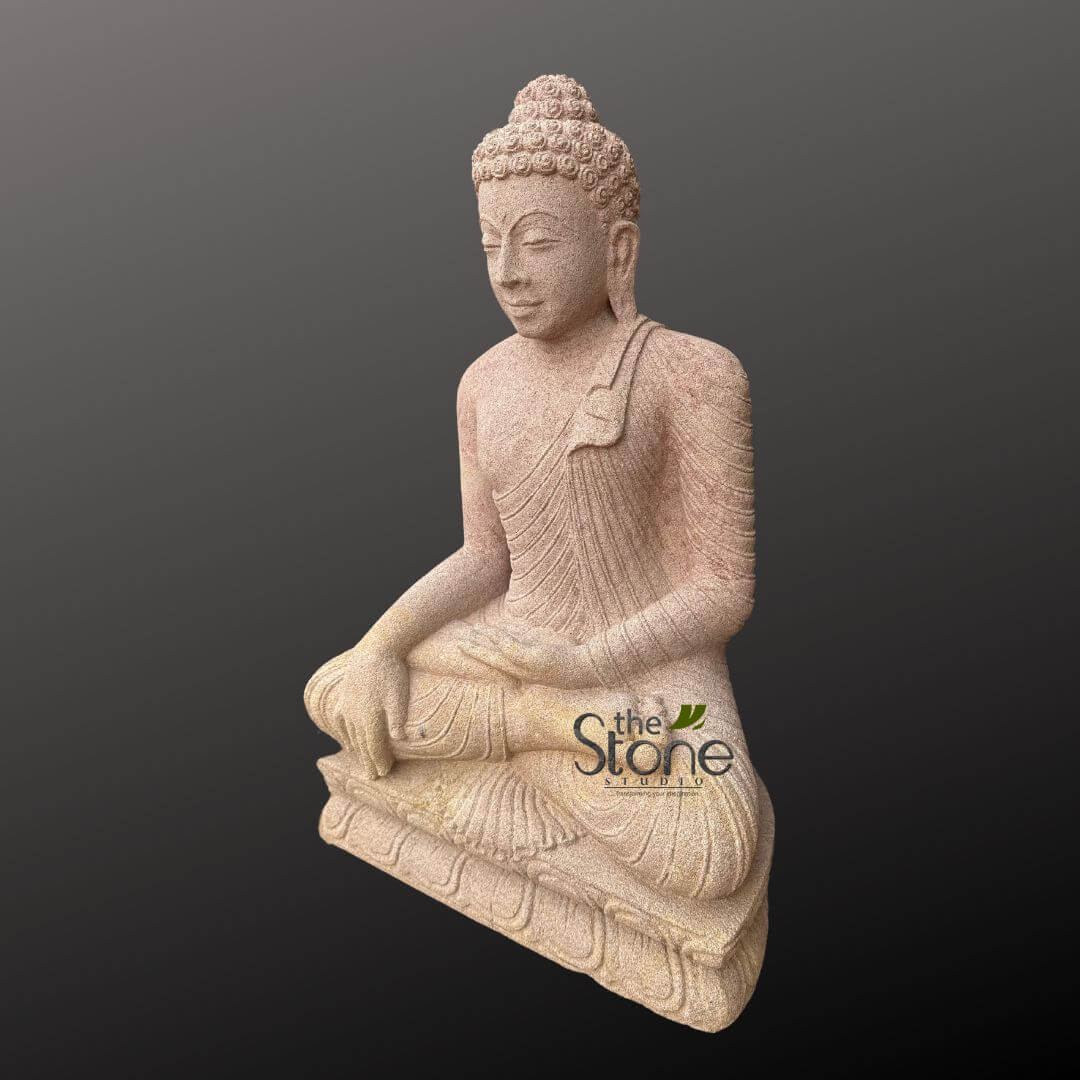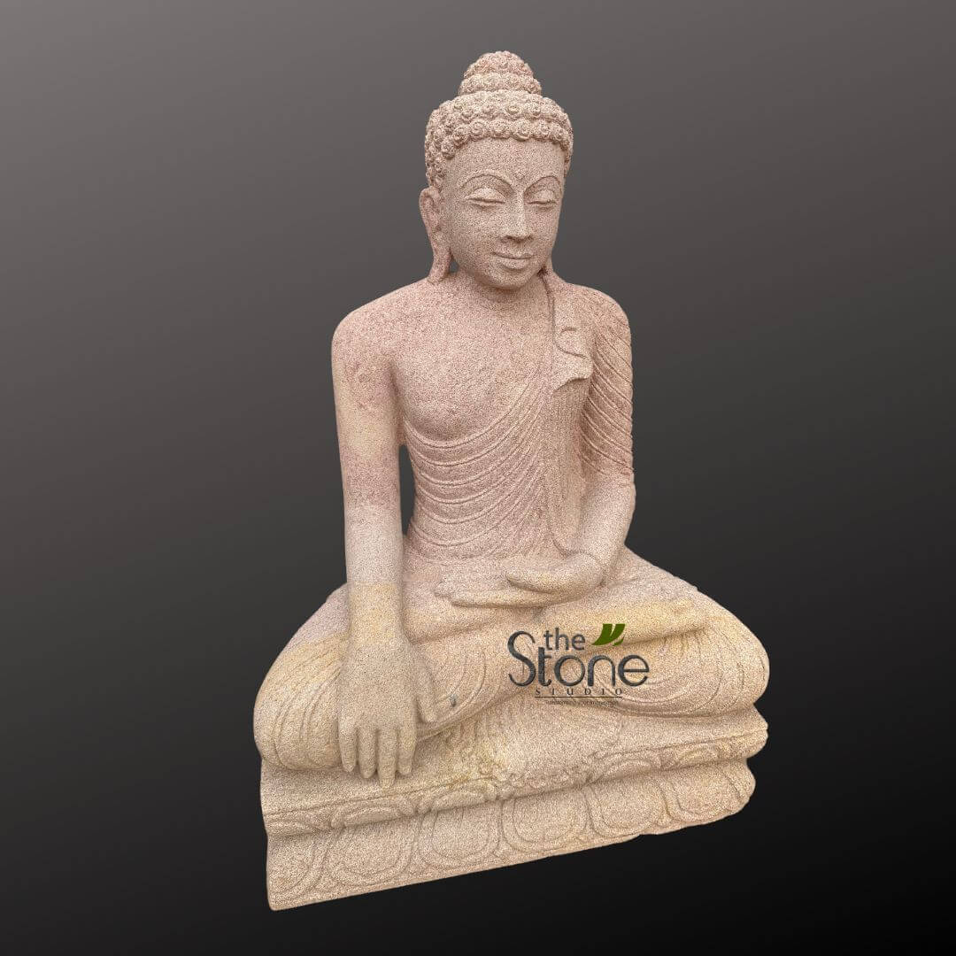 The material used in it is antique look sandstone. This sculpture is wonderfully crafted by our best artisans. For more such statues browse our website. If you still don’t get what you want, our artisans will craft your specified designs of a Bhumisparsha Buddha stone statue with utmost care and love.