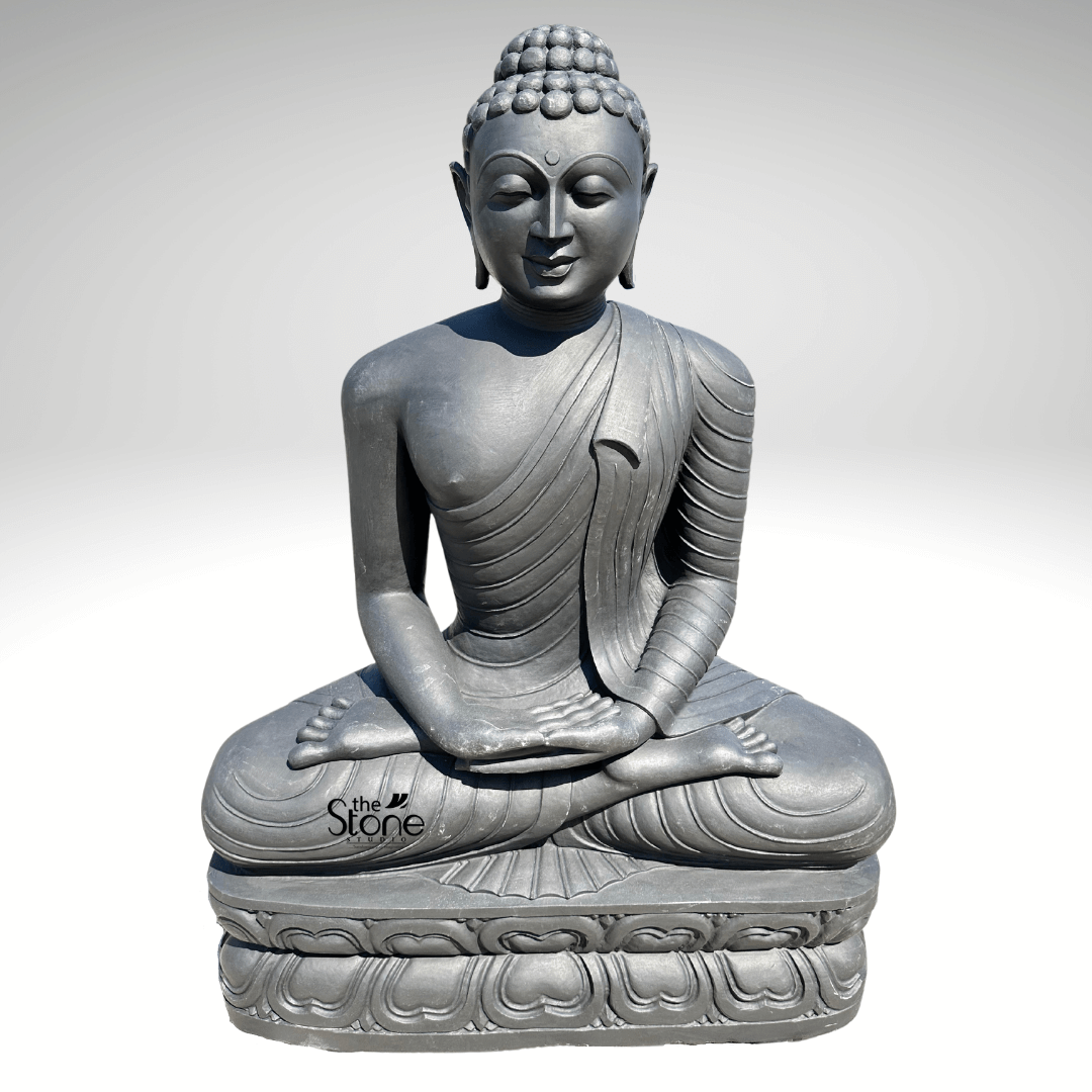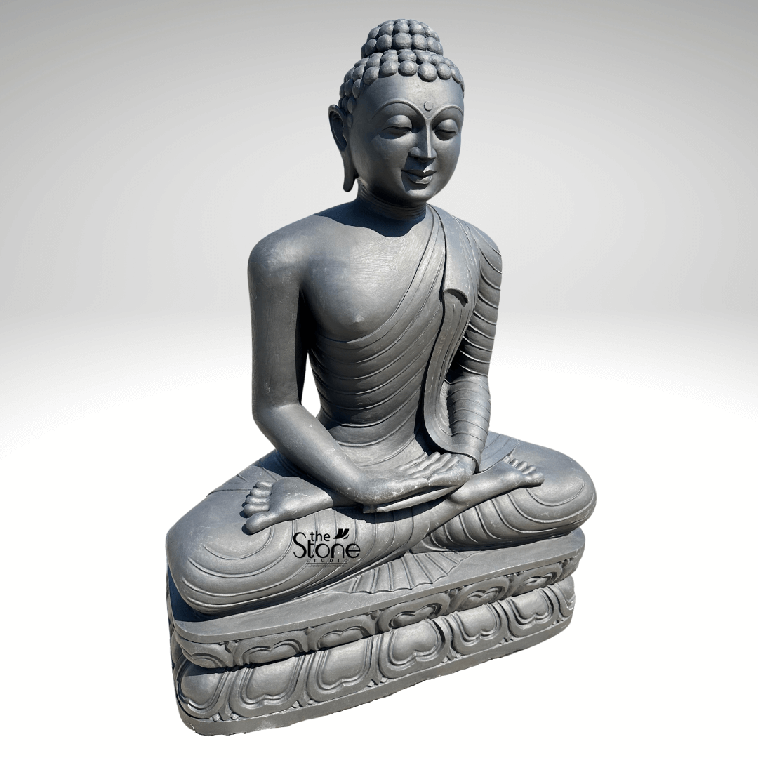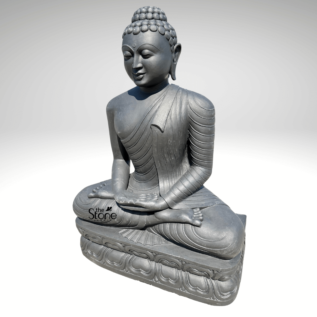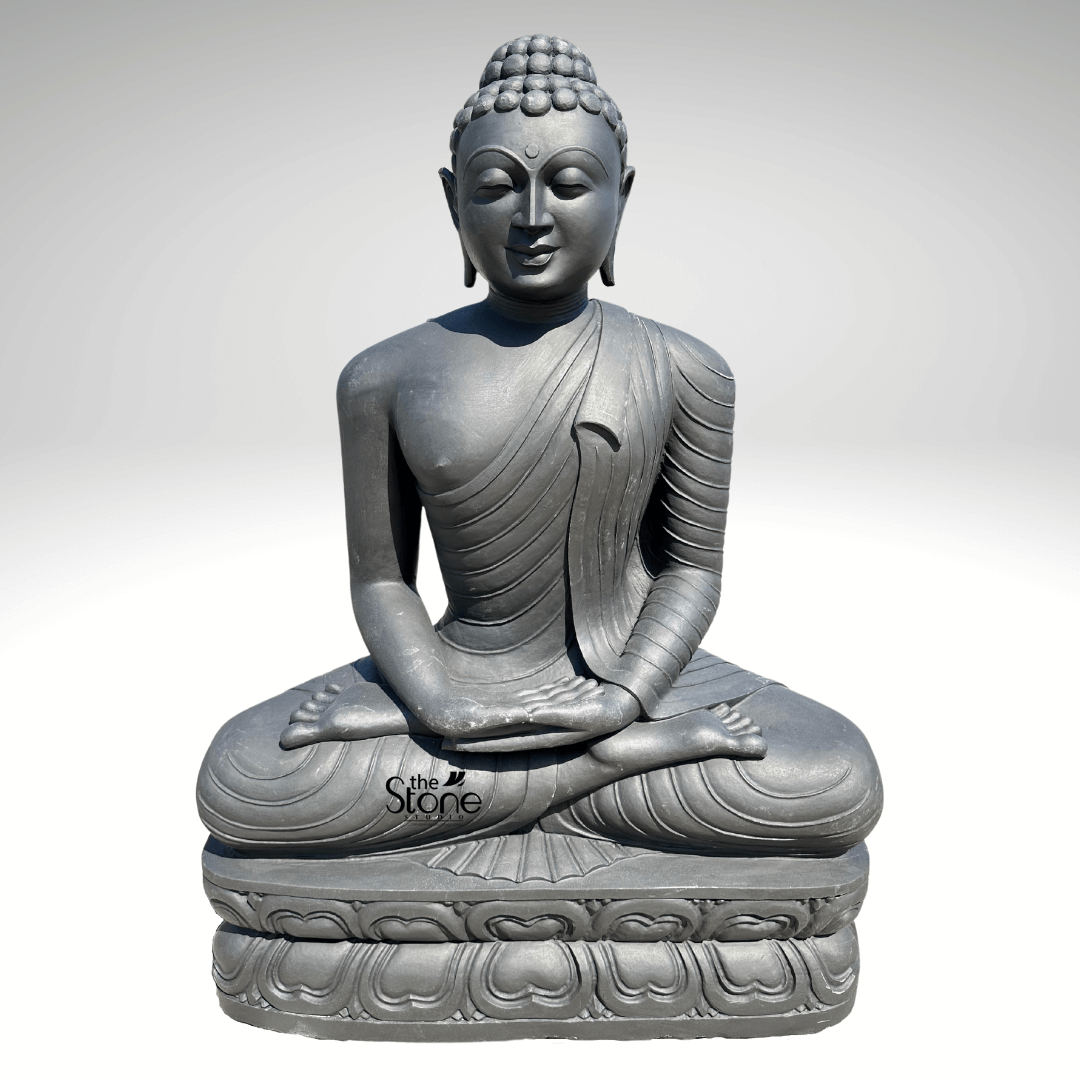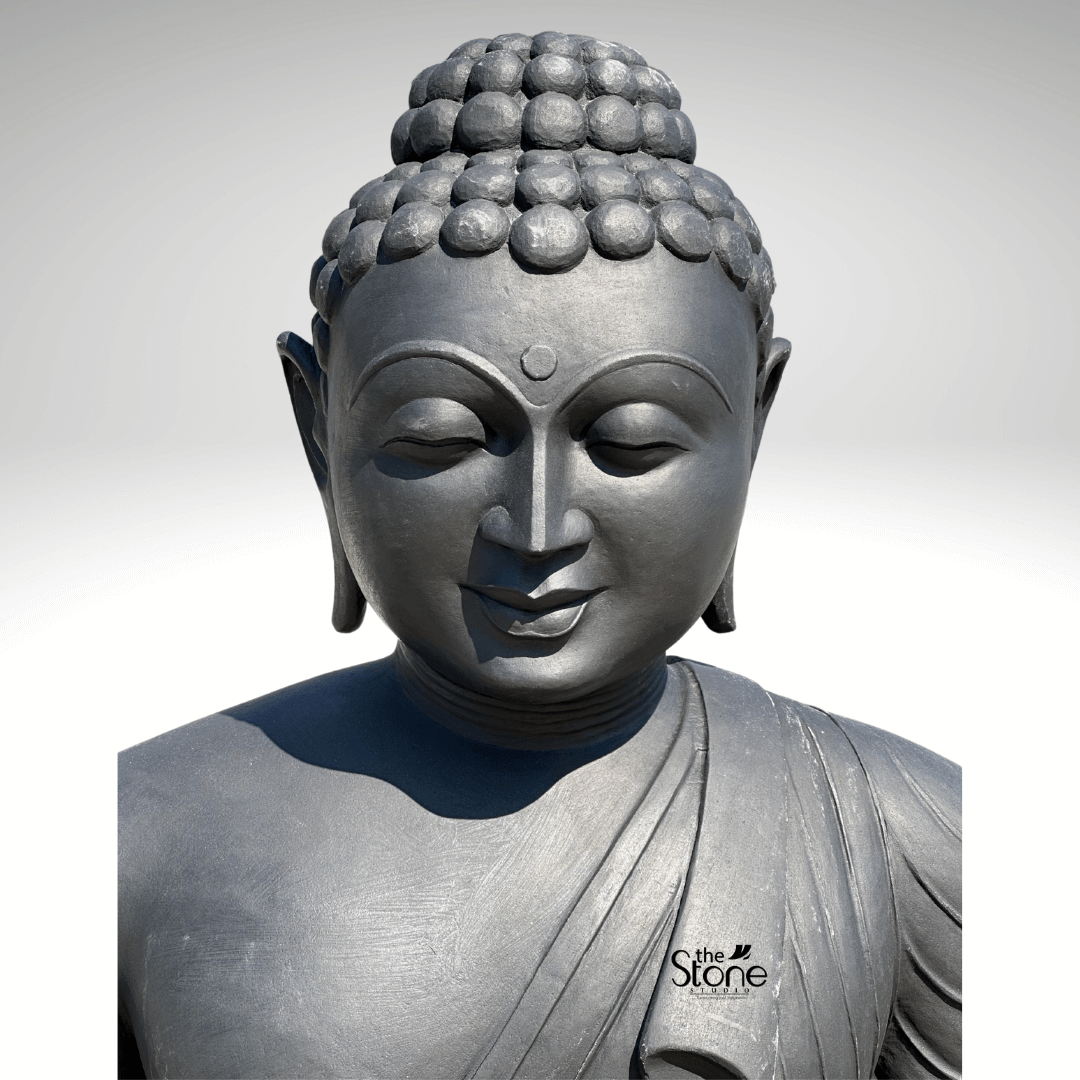 The material used in it is black stone. This sculpture is wonderfully crafted by our best artisans. For more such statues browse our website. If you still don’t get what you want, our artisans will craft your specified designs of the big Buddha stone statue with utmost care and love.
