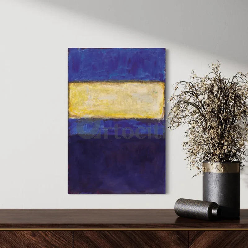 Elevate your space with our Blue Yellow Dark Blue Abstract Art Canvas Giclee Print by renowned artist Mark Rothko. This stunning piece is available in two sizes: 24x16 inches and 30x20 inches, ensuring a perfect fit for any room. Crafted on high-quality 380 GSM canvas, the vivid colors and intricate details come to life, adding a touch of sophistication to your decor. Immerse yourself in the rich hues and dynamic composition of this masterpiece. Transform your space into an art gallery with this exclusive print that captures the essence of modern elegance.