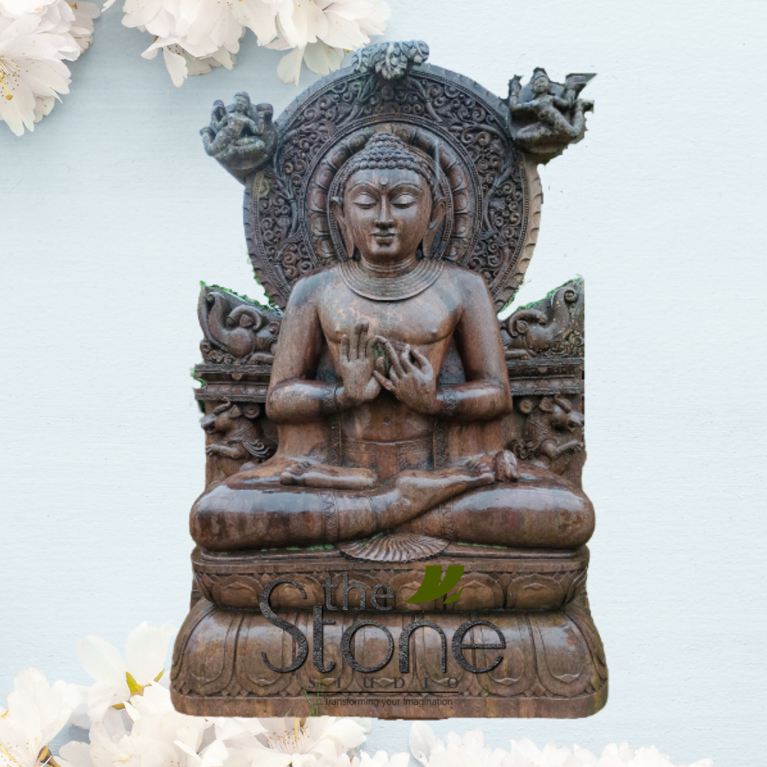 The material used in it is sandstone. Our best artisans wonderfully craft this sculpture. For more such statues browse our website. If you still don’t get what you want, our artisans will craft your specified designs of Buddha statue in dharmachakra mudra with utmost care and love.