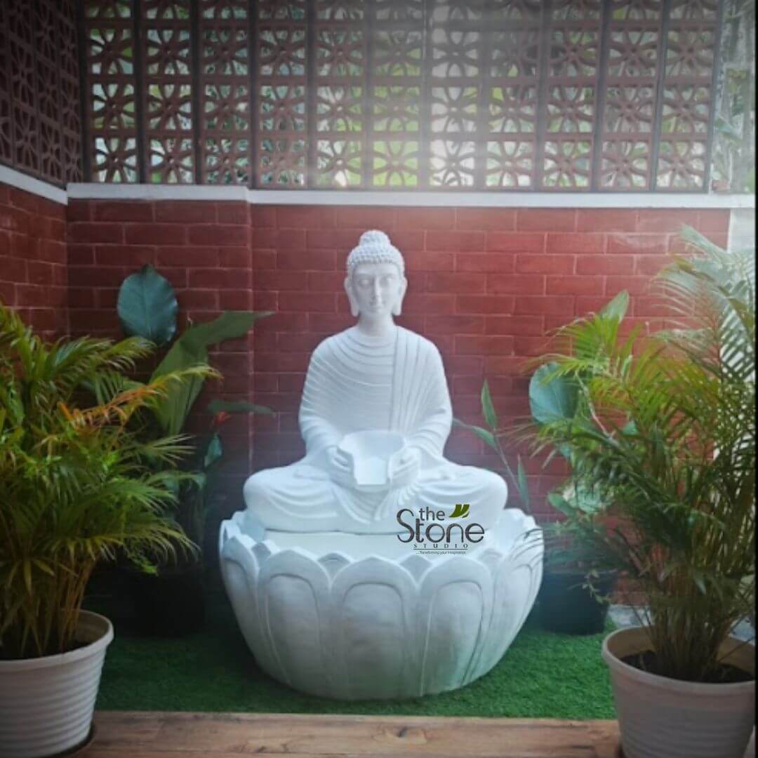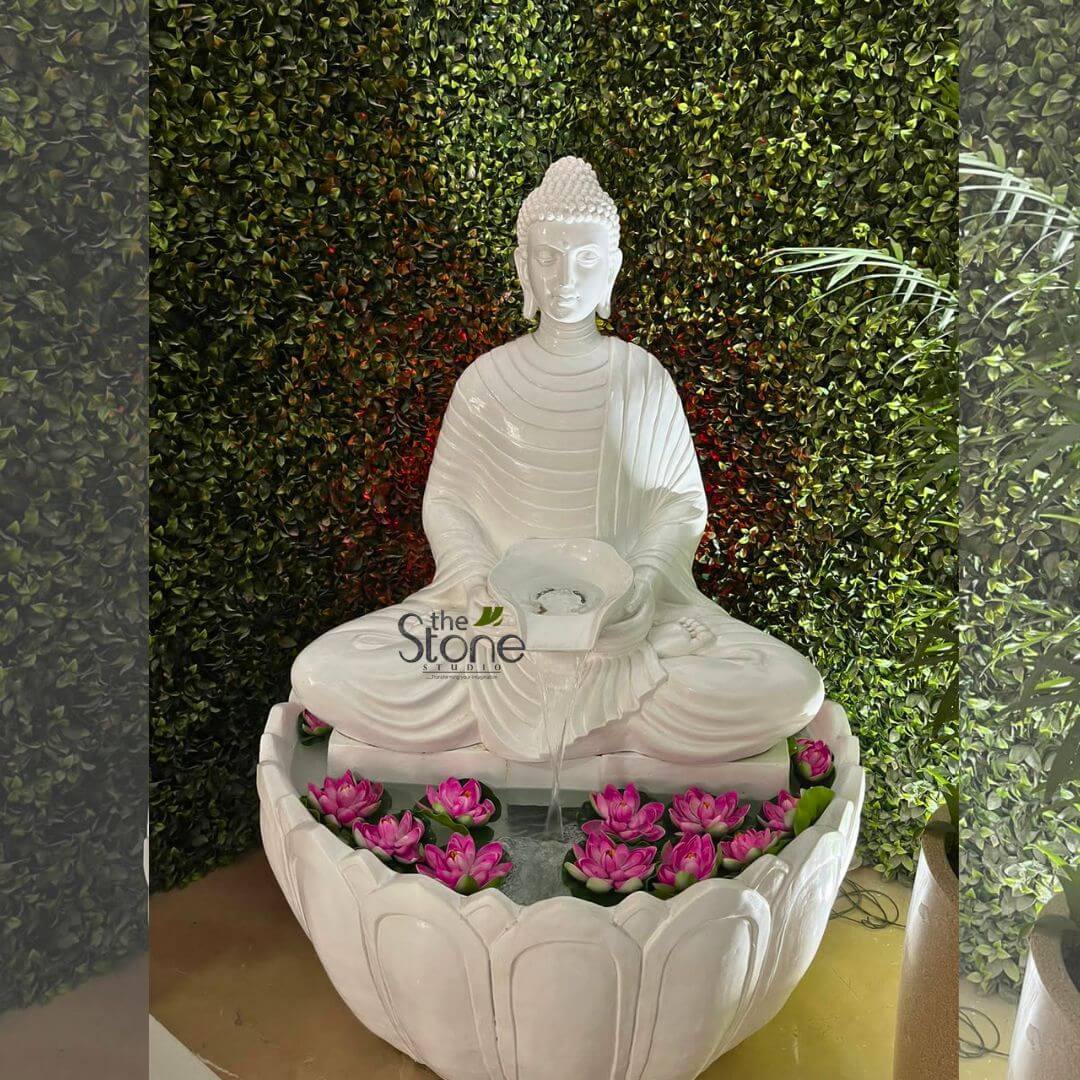 The material used in it is fibre. Our best artisans wonderfully craft this sculpture. For more such statues browse our website. If you still don’t get what you want, our artisans will craft your specified designs of the Buddha water fountain for home with utmost care and love.