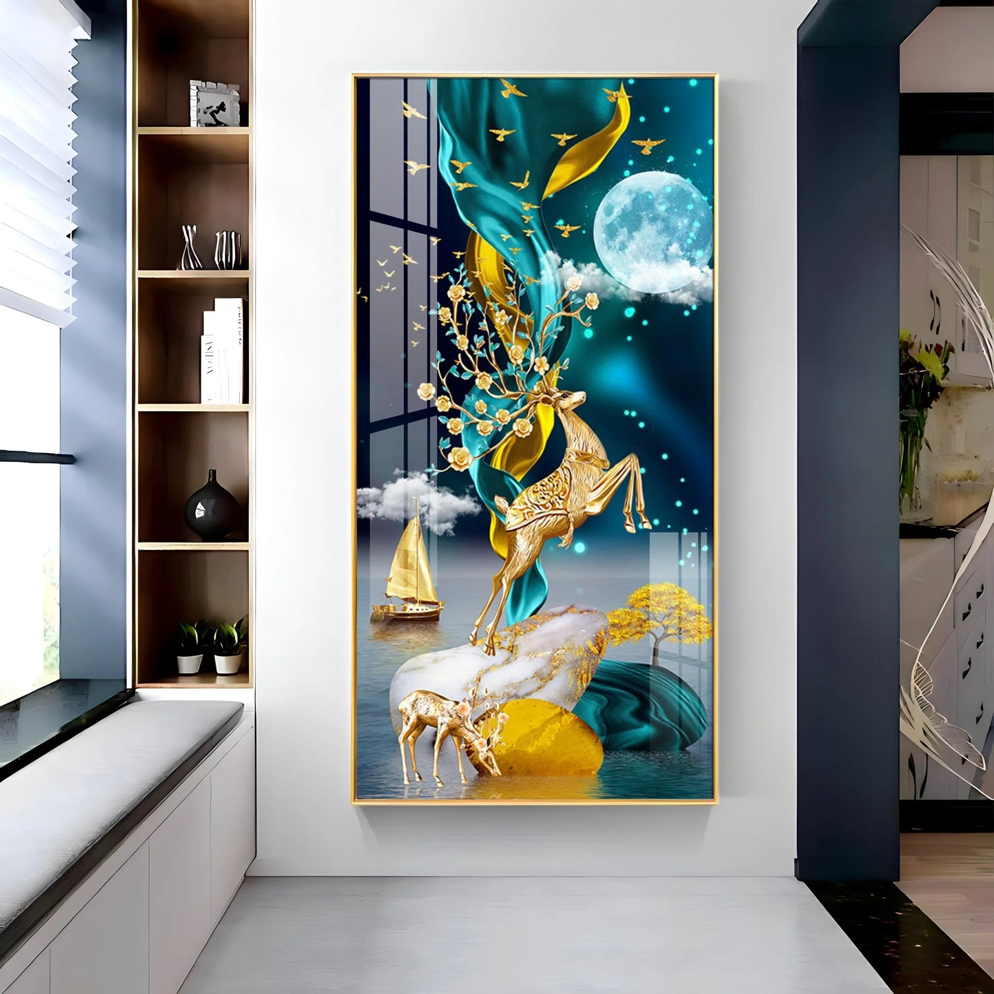 Elegant Golden Deer Chinese Zenstore with Golden Deer Luxury Crystal Wall Art