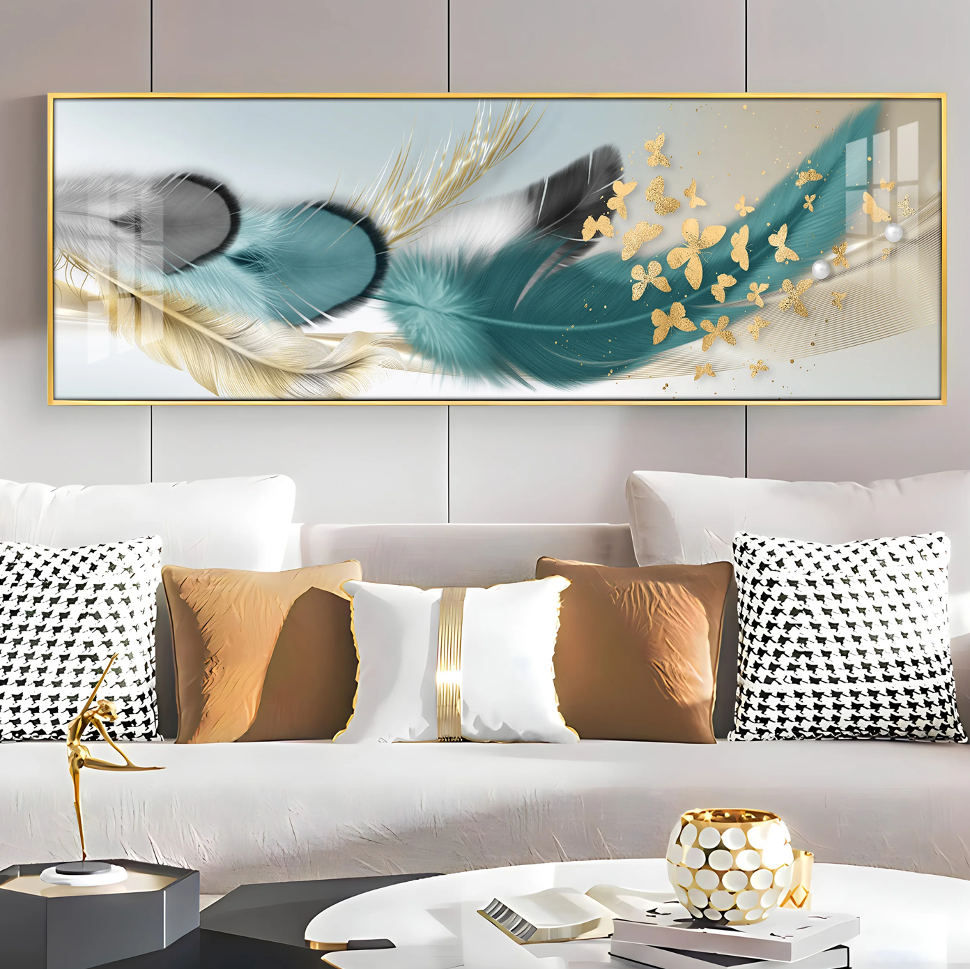 Feathers and Butterflies Premium Acrylic Horizontal Wall Art