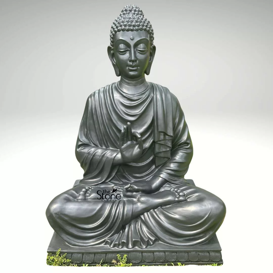 The material used in it is fibre. This sculpture is wonderfully crafted by our best artisans. For more such statues browse our website. If you still don’t get what you want, our artisans will craft your specified designs of fibre black Buddha statue with utmost care and love.