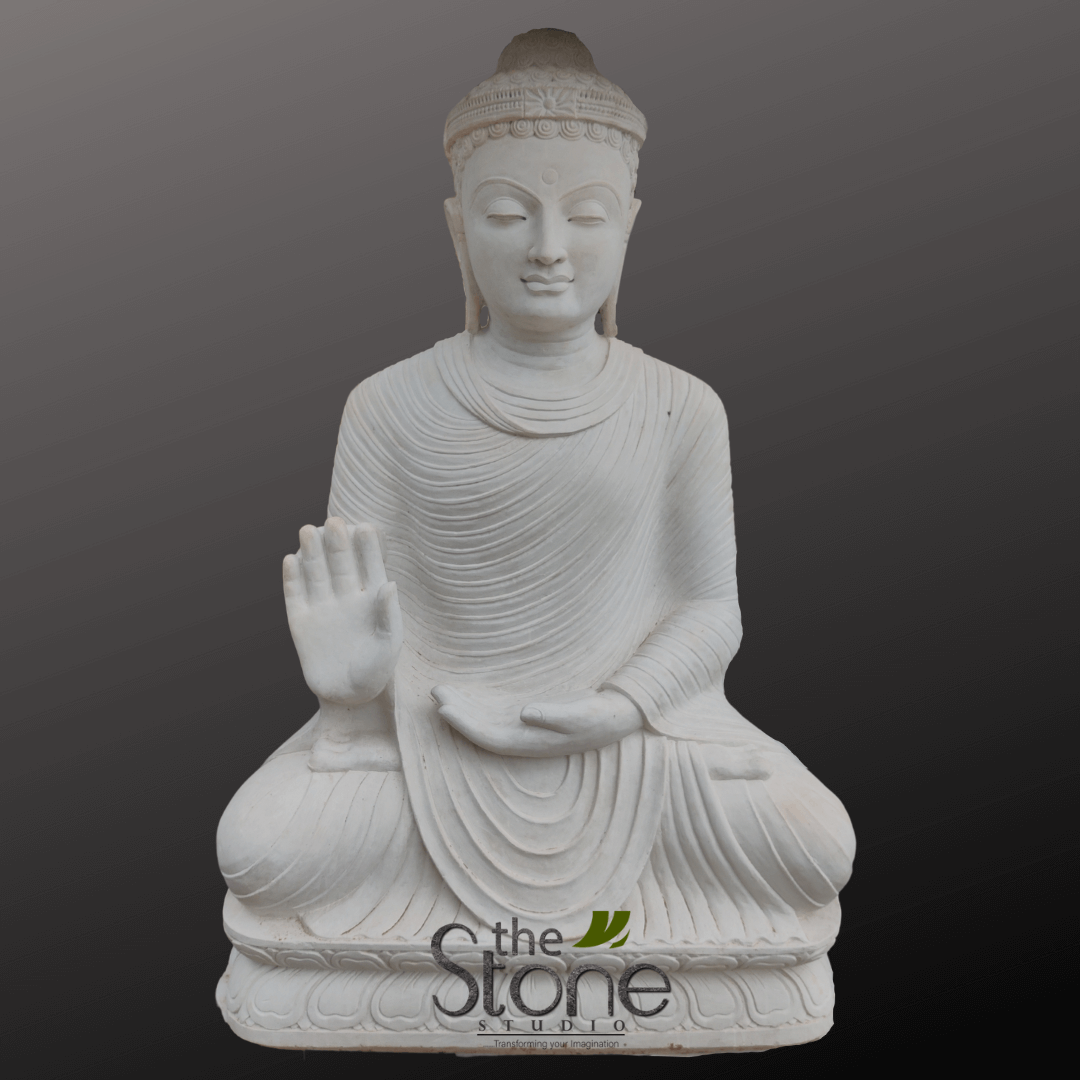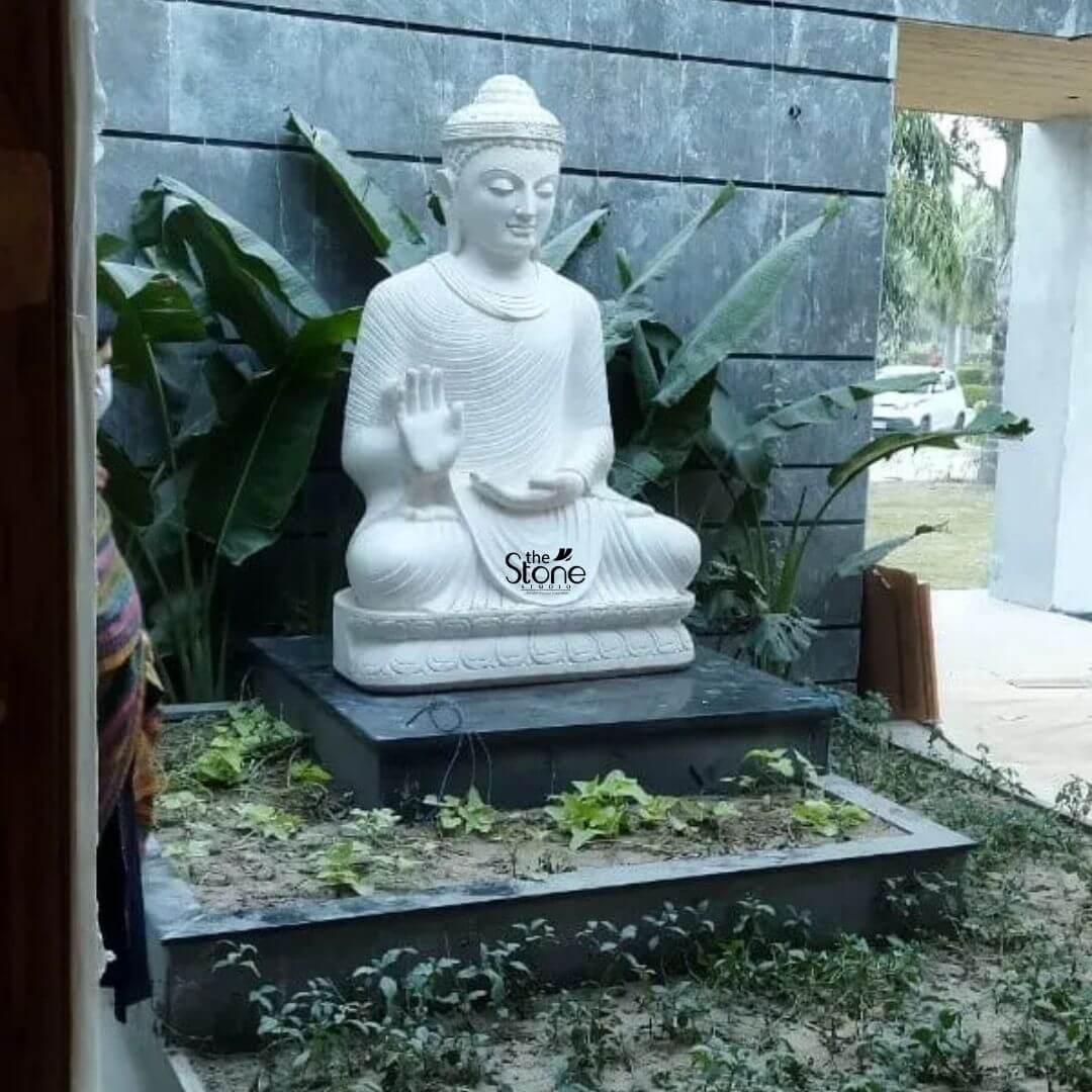 The material used in it is white Sand Stone. This sculpture is wonderfully crafted by our best artisans. For more such statues browse our website. If you still don’t get what you want, our artisans will craft your specified designs of the Gautam Buddha big statue with utmost care and love.