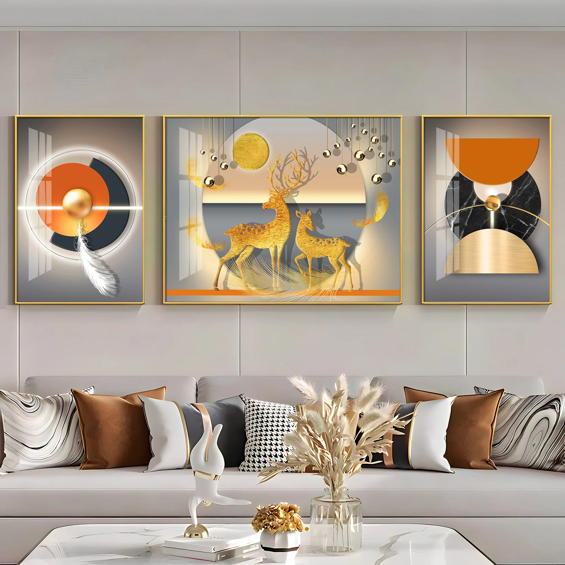 Golden Deers Premium Acrylic Wall Art (Set of 3)