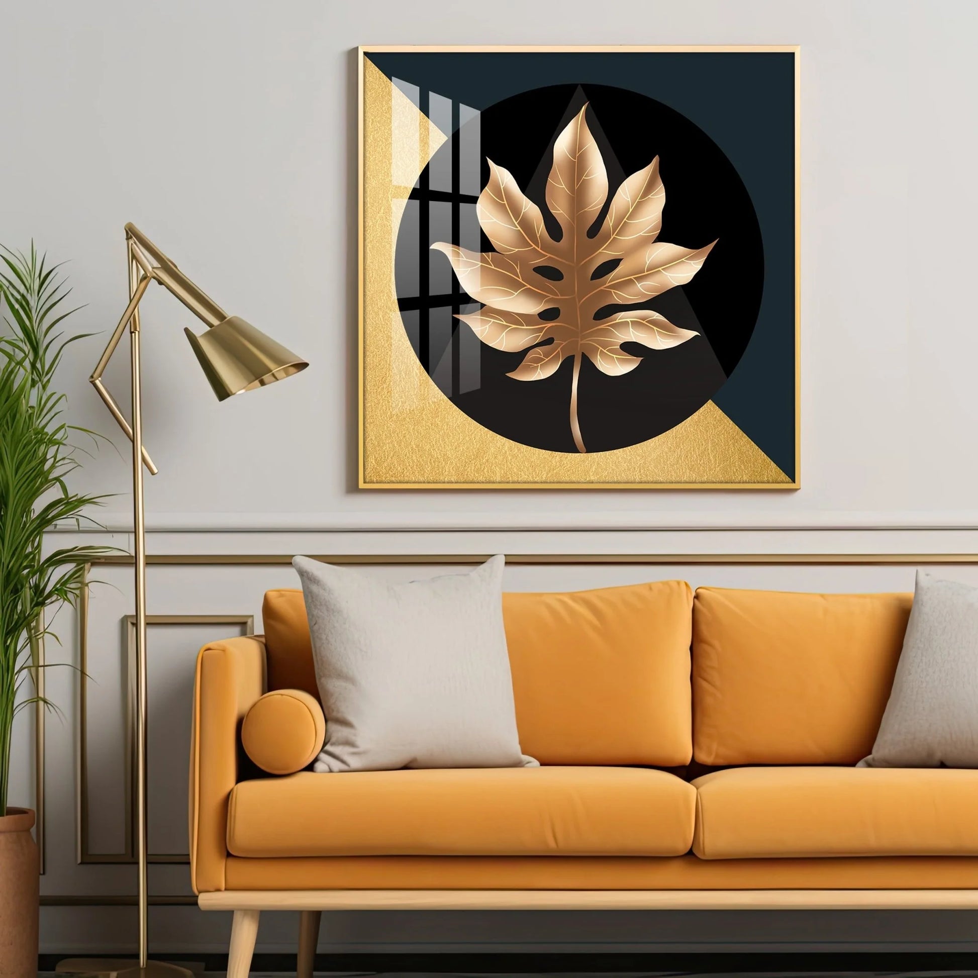 Golden Fall Leaf Luxury Crystal Square Wall Art