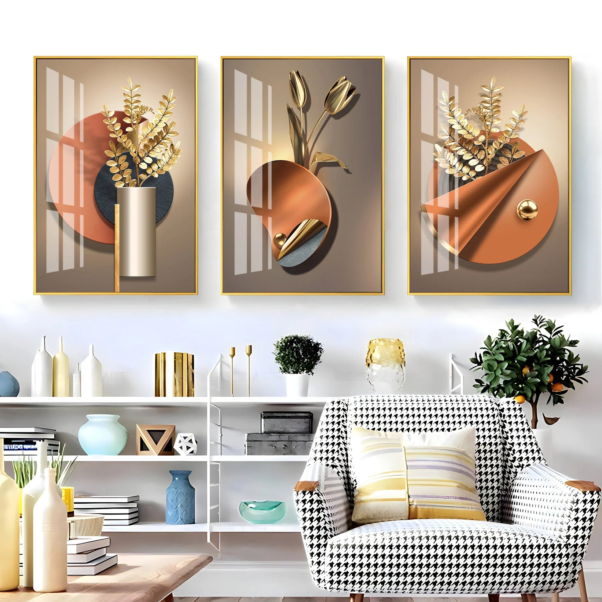 Golden Flower Triptych Luxury Crystal Wall Art (Set of 3)