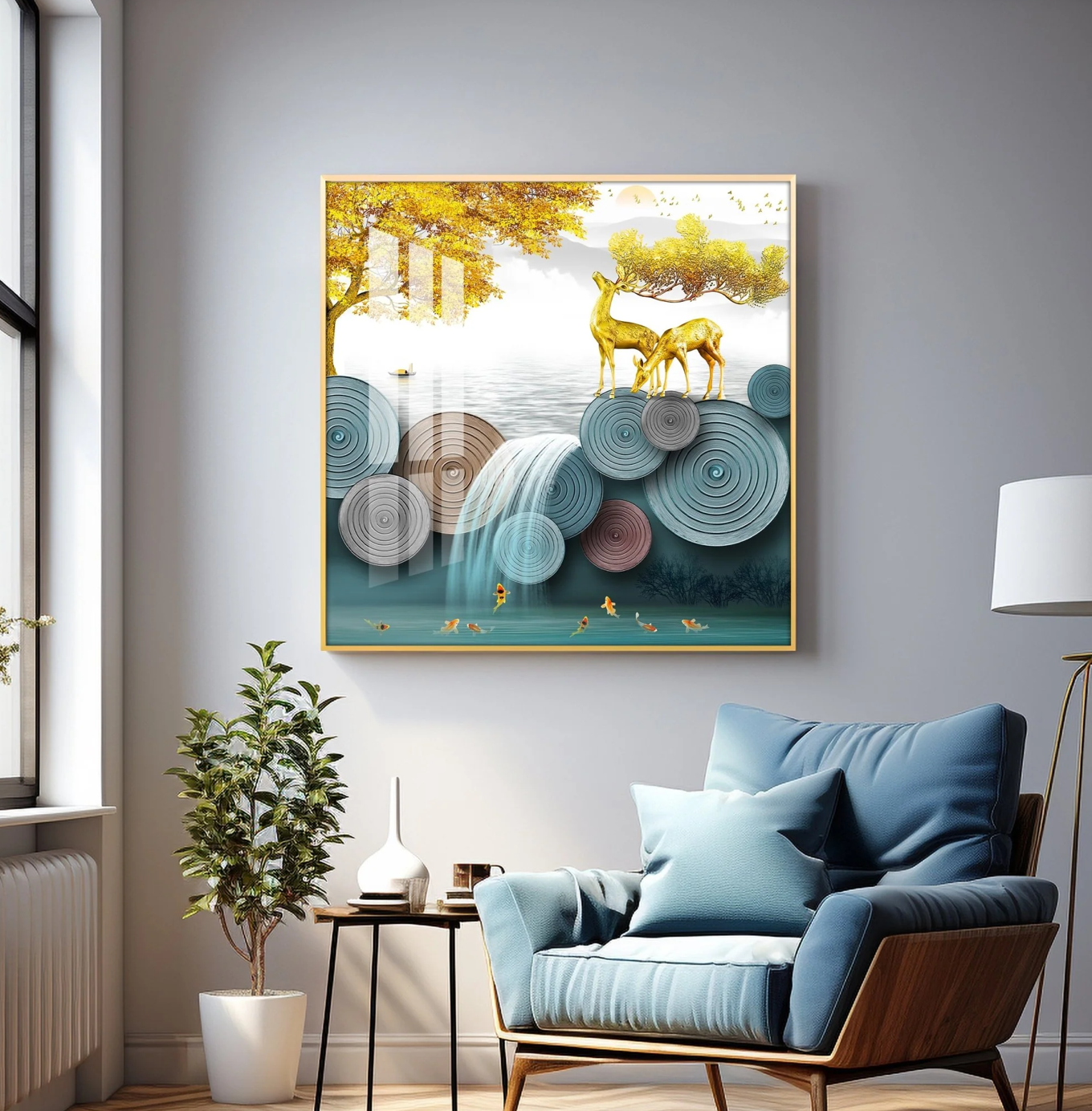 Golden Fortune Deer Premium Acrylic Square Wall Art
