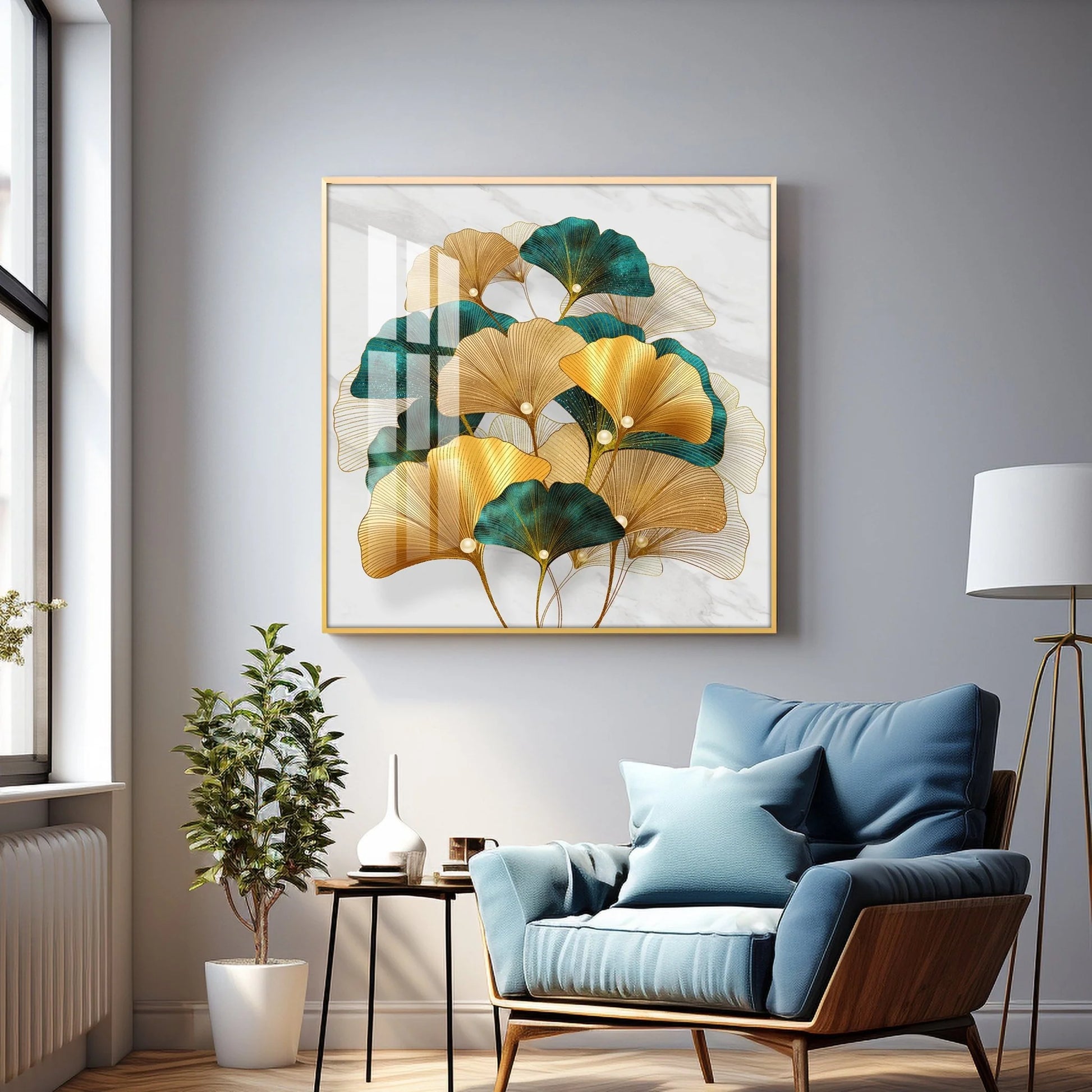 Golden Ginkgo Biloba Luxury Crystal Square Wall Art