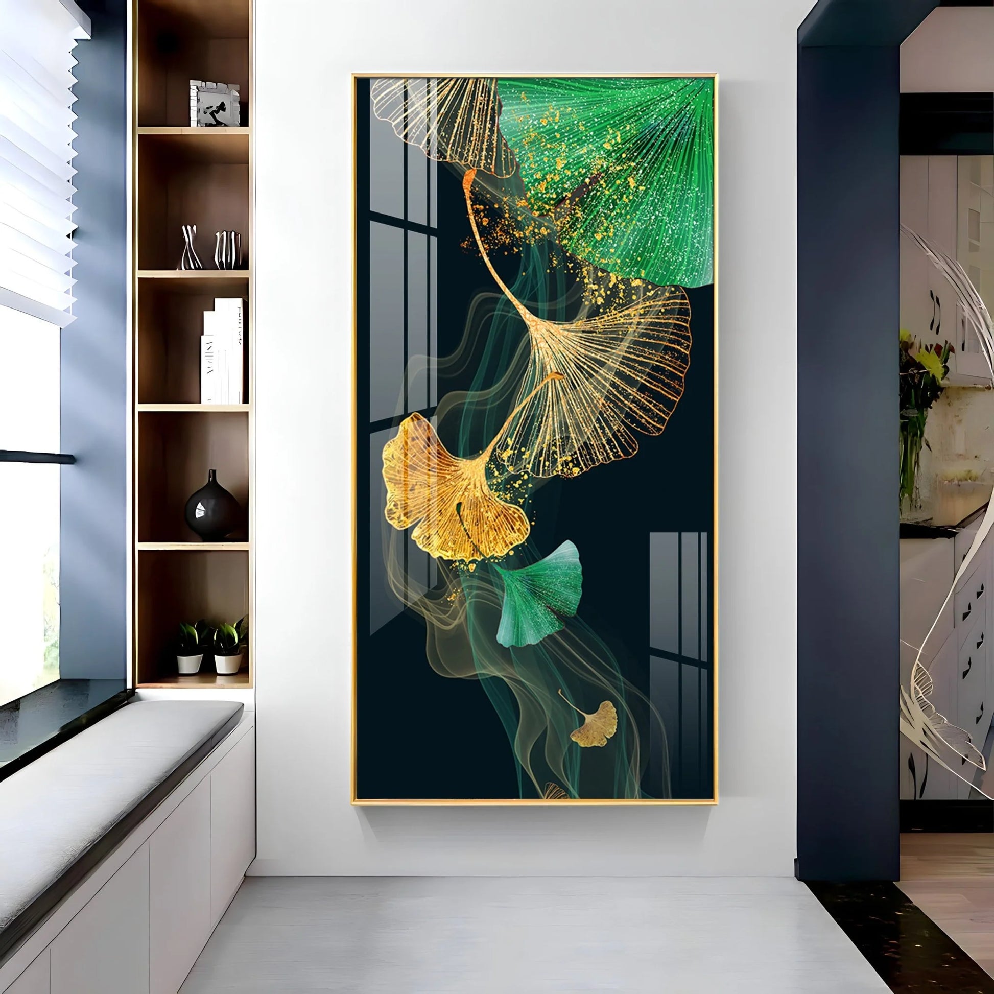 Green Ginkgo Biloba Leaves Luxury Crystal Wall Art