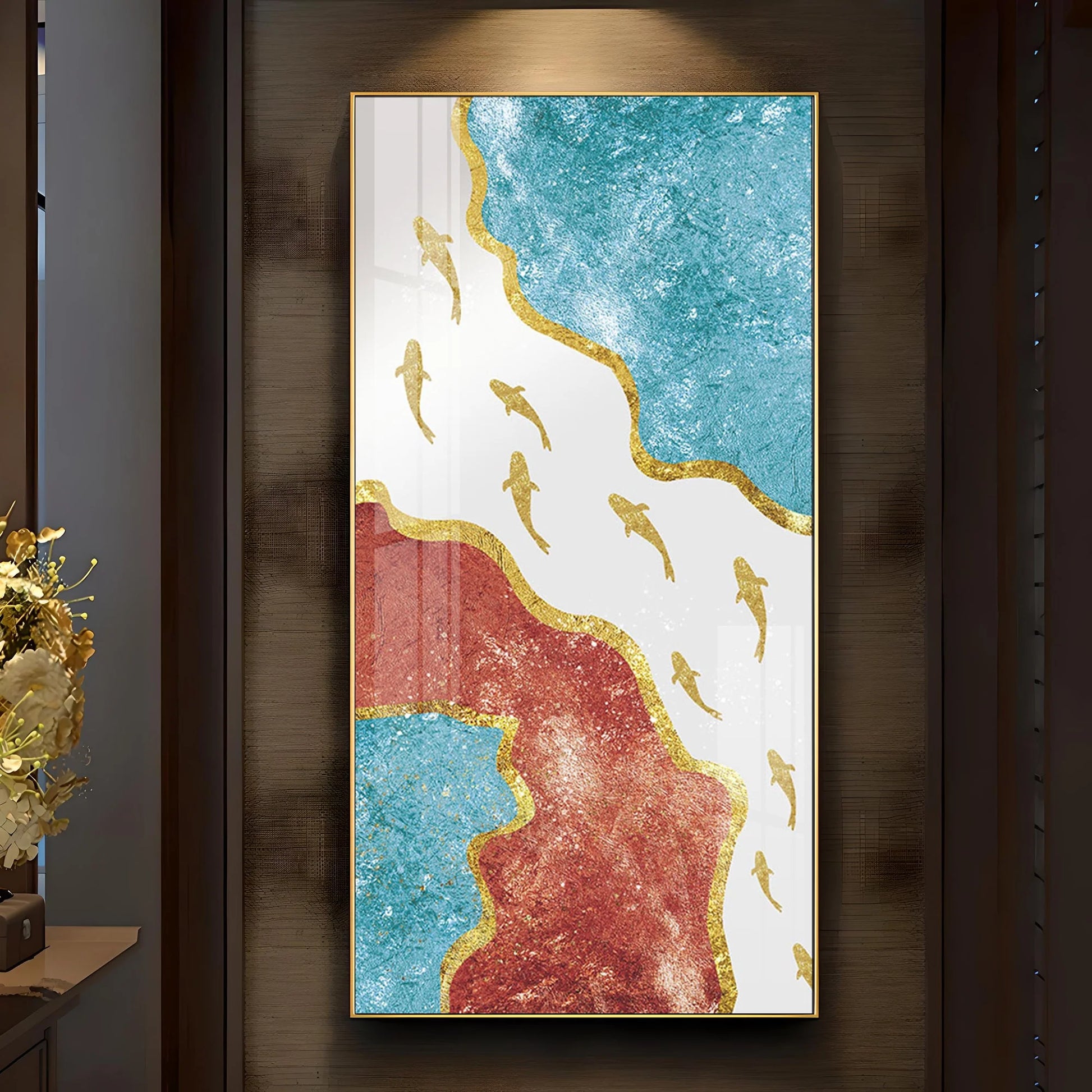 Group of Golden Koi Fishes Luxury Crystal Wall Art
