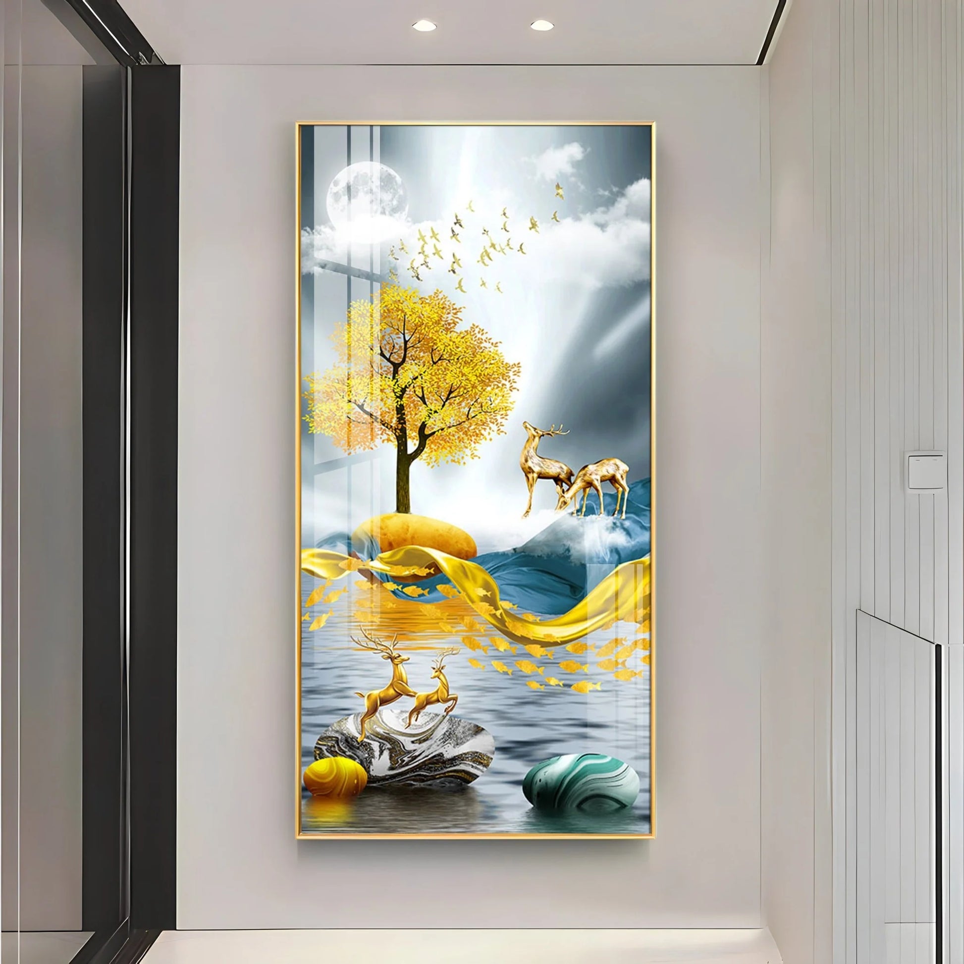 Happy Golden Deers Luxury Crystal Wall Art