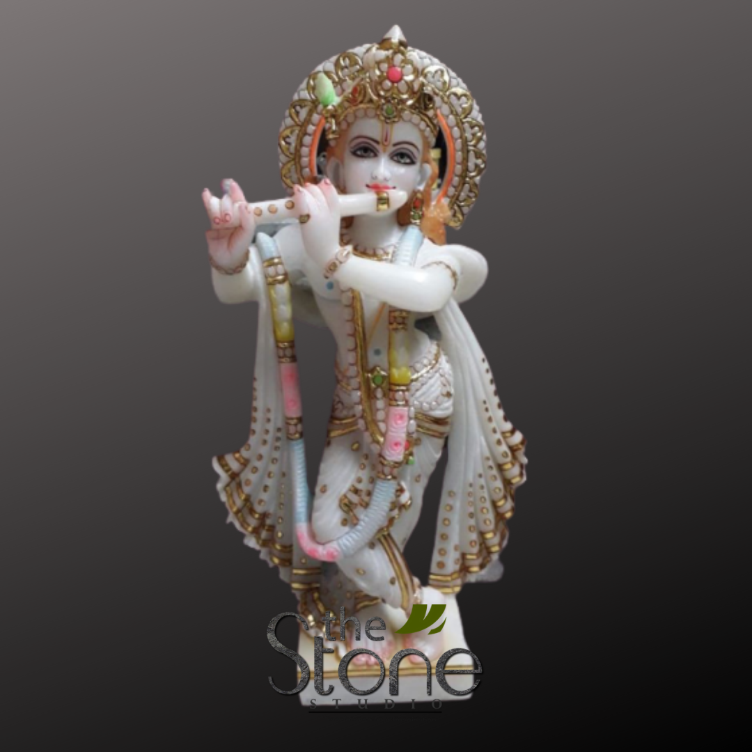 The material used in it is Marble. Our best artisans wonderfully craft this sculpture. For more such statues browse our website. If you still don’t get what you want, our artisans will craft your specified designs of a marble Krishna idol with utmost care and love.