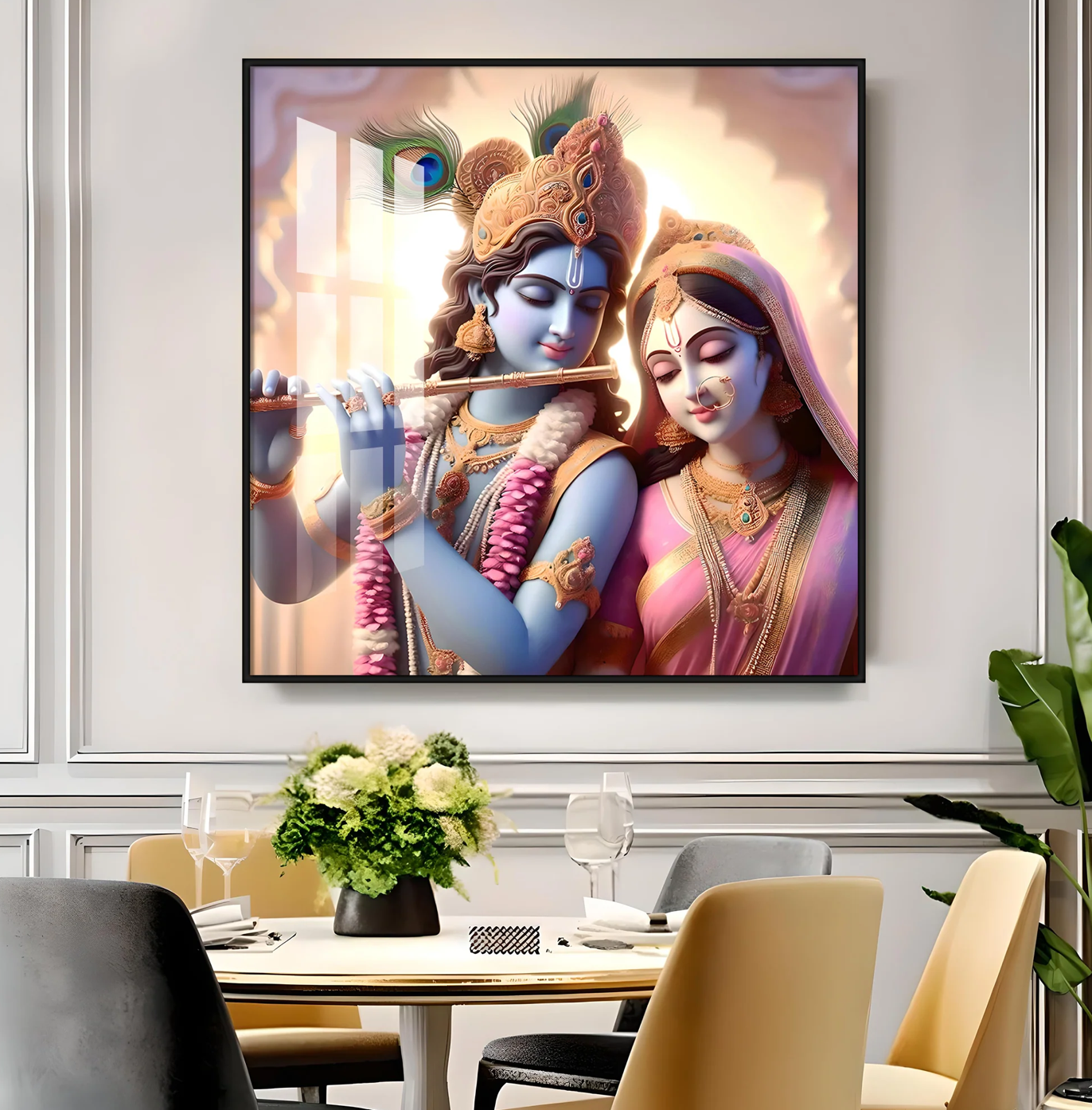 Krishna Playing Flute For Radha Premium Acrylic Square Wall Art