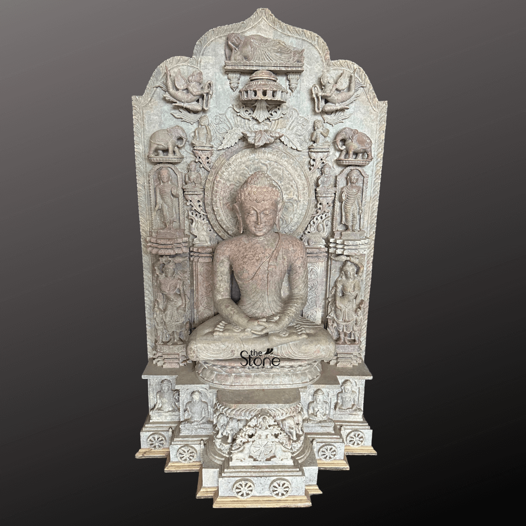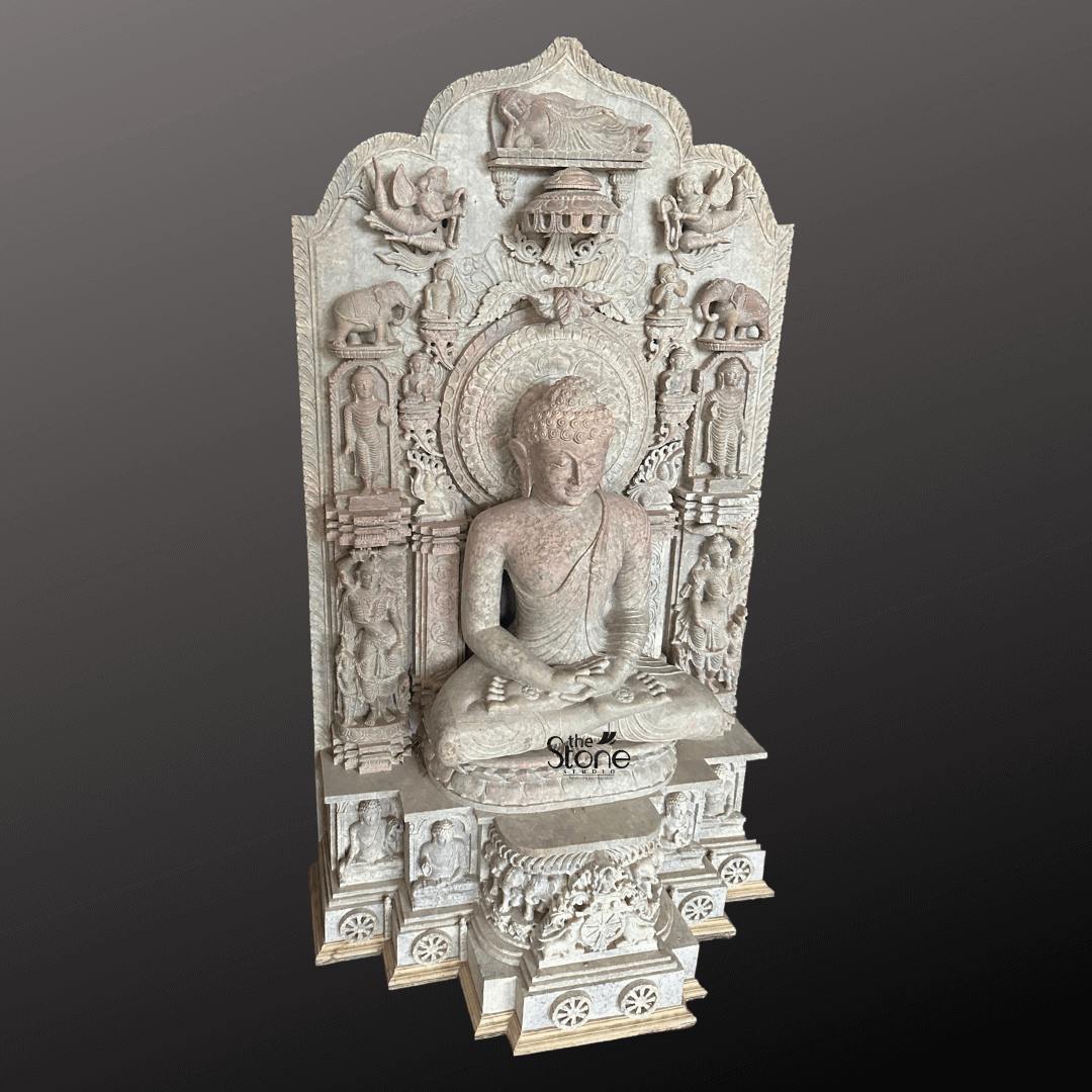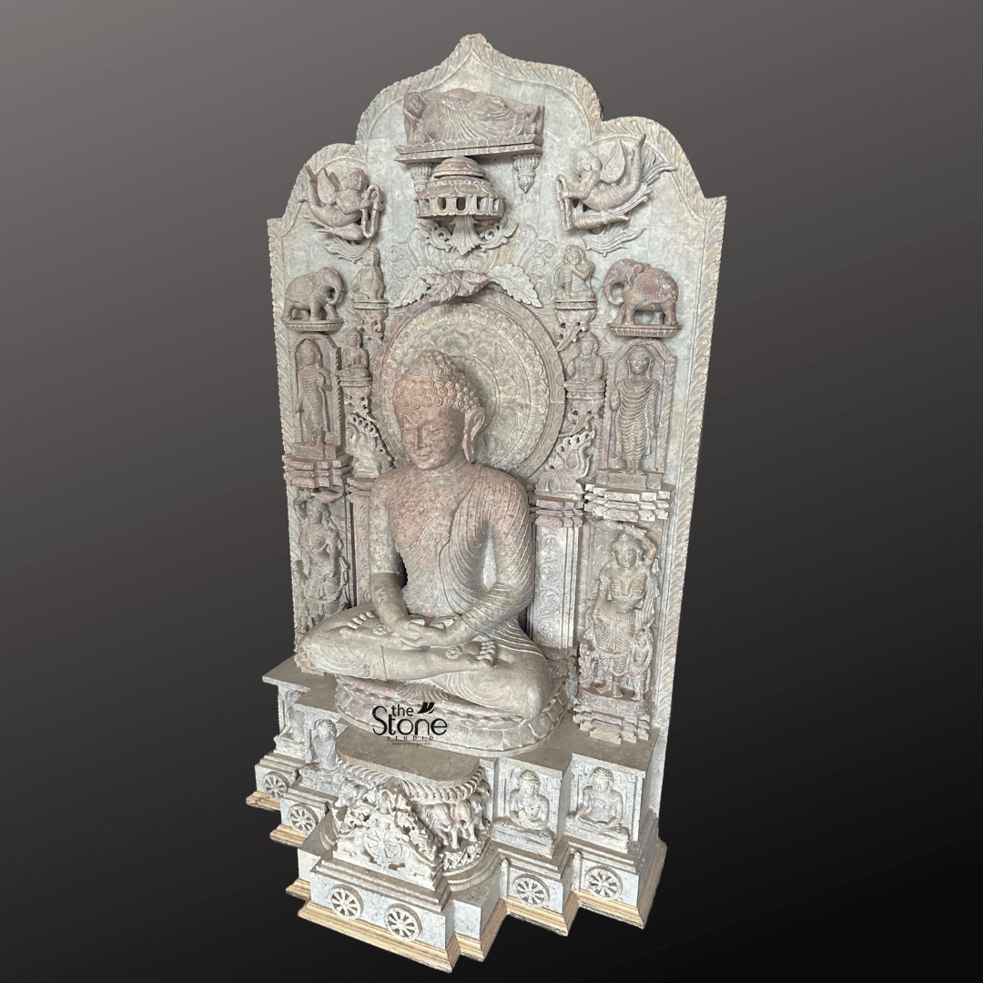 The material used in it is Onyx stone. This sculpture is wonderfully crafted by our best artisans. For more such statues browse our website. If you still don’t get what you want, our artisans will craft your specified designs of a large Buddha statue for home decor with utmost care and love.
