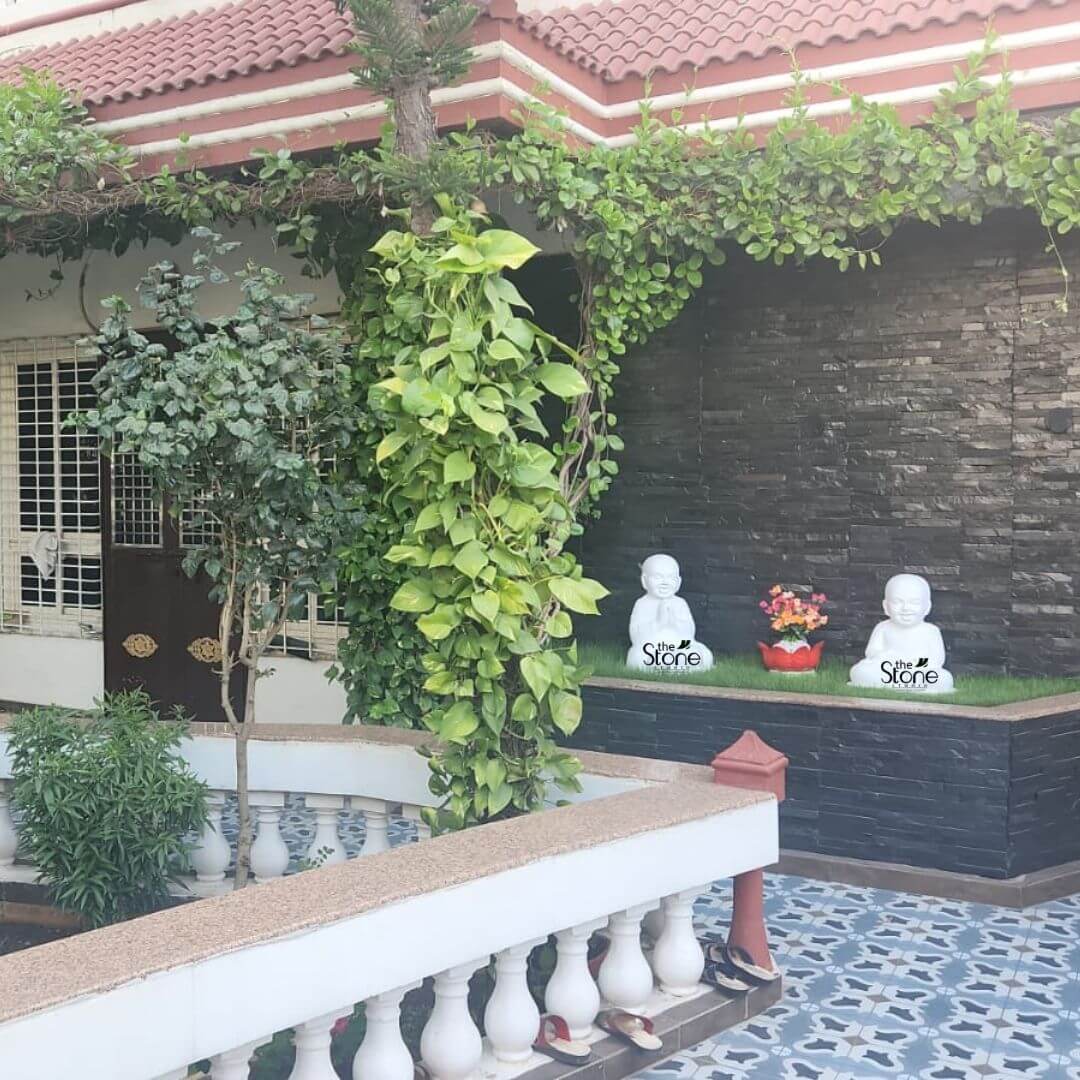 The material used in it is Fibre. Our best artisans wonderfully craft this sculpture. For more such statues browse our website. If you still don’t get what you want, our artisans will craft your specified designs of Laughing Buddha baby monk statue with utmost care and love.