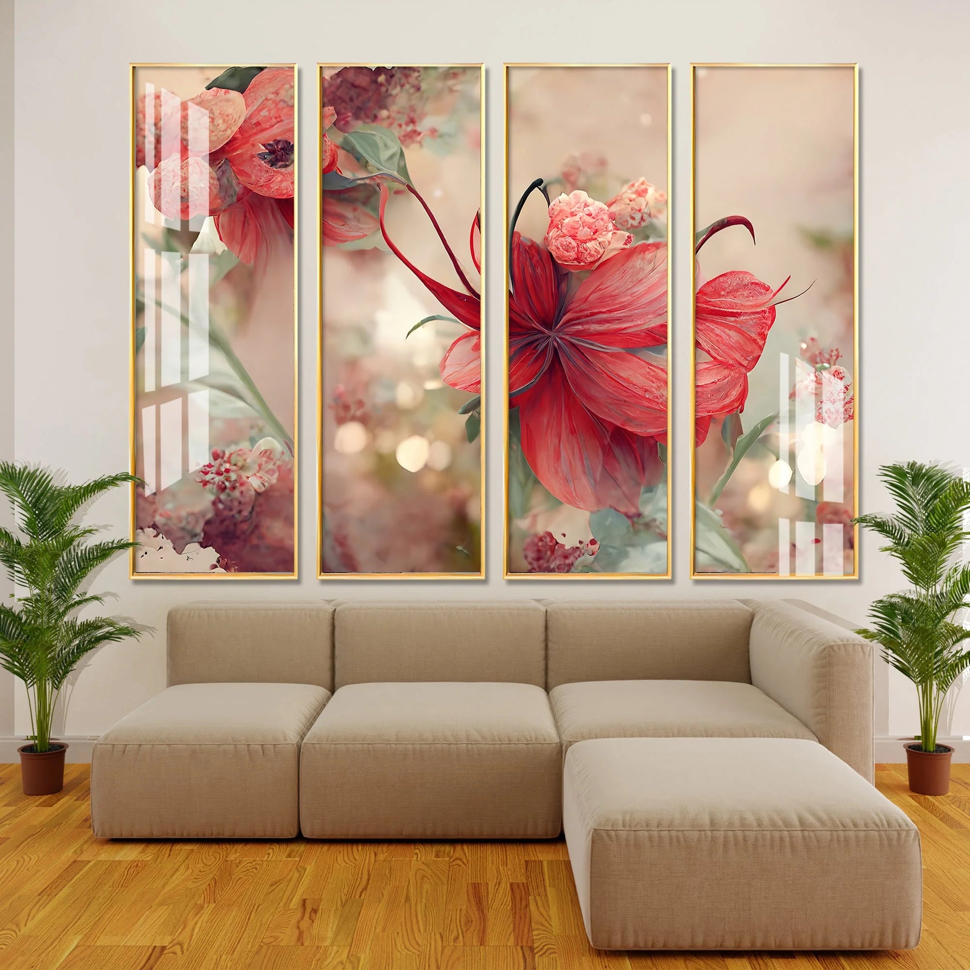 Lovely Flowers Premium Acrylic Vertical Wall Art (set of 4)