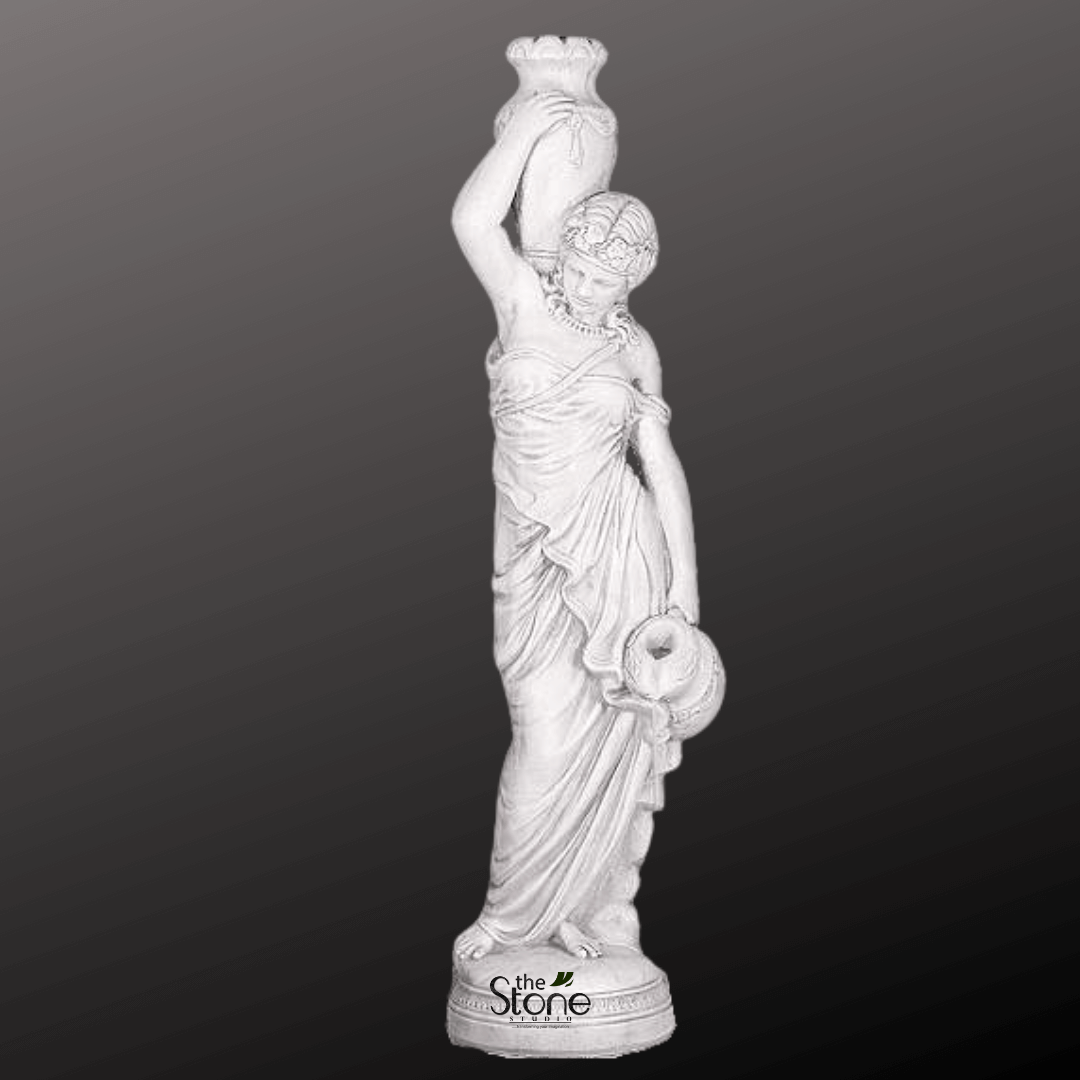 The material used in it is marble. Our best artisans wonderfully craft this sculpture. For more such statues browse our website. If you still don’t get what you want, our artisans will craft your specified designs of a marble fountain with a standing lady with utmost care and love.
