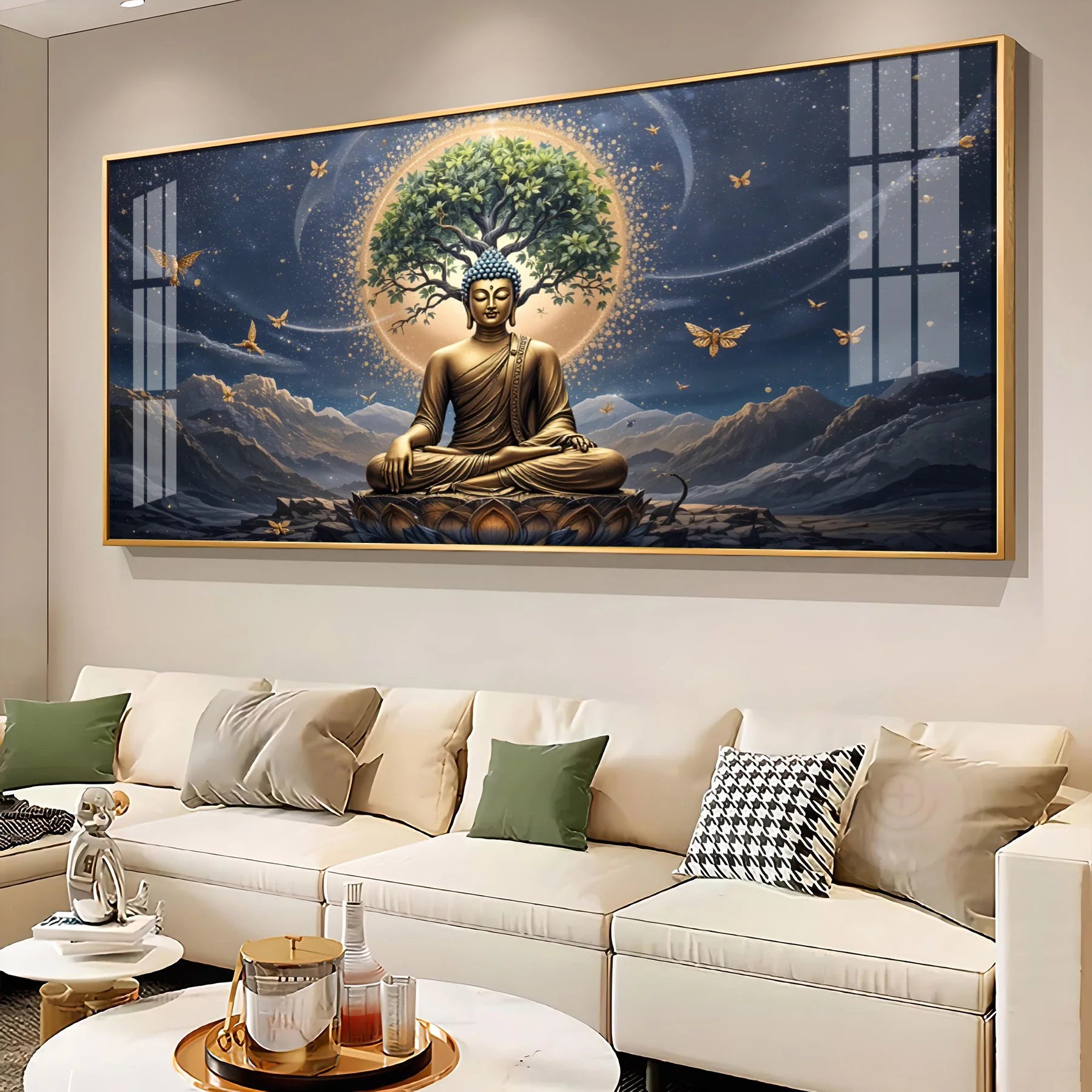 Meditating Buddha In Night Premium Acrylic Horizontal Wall Art