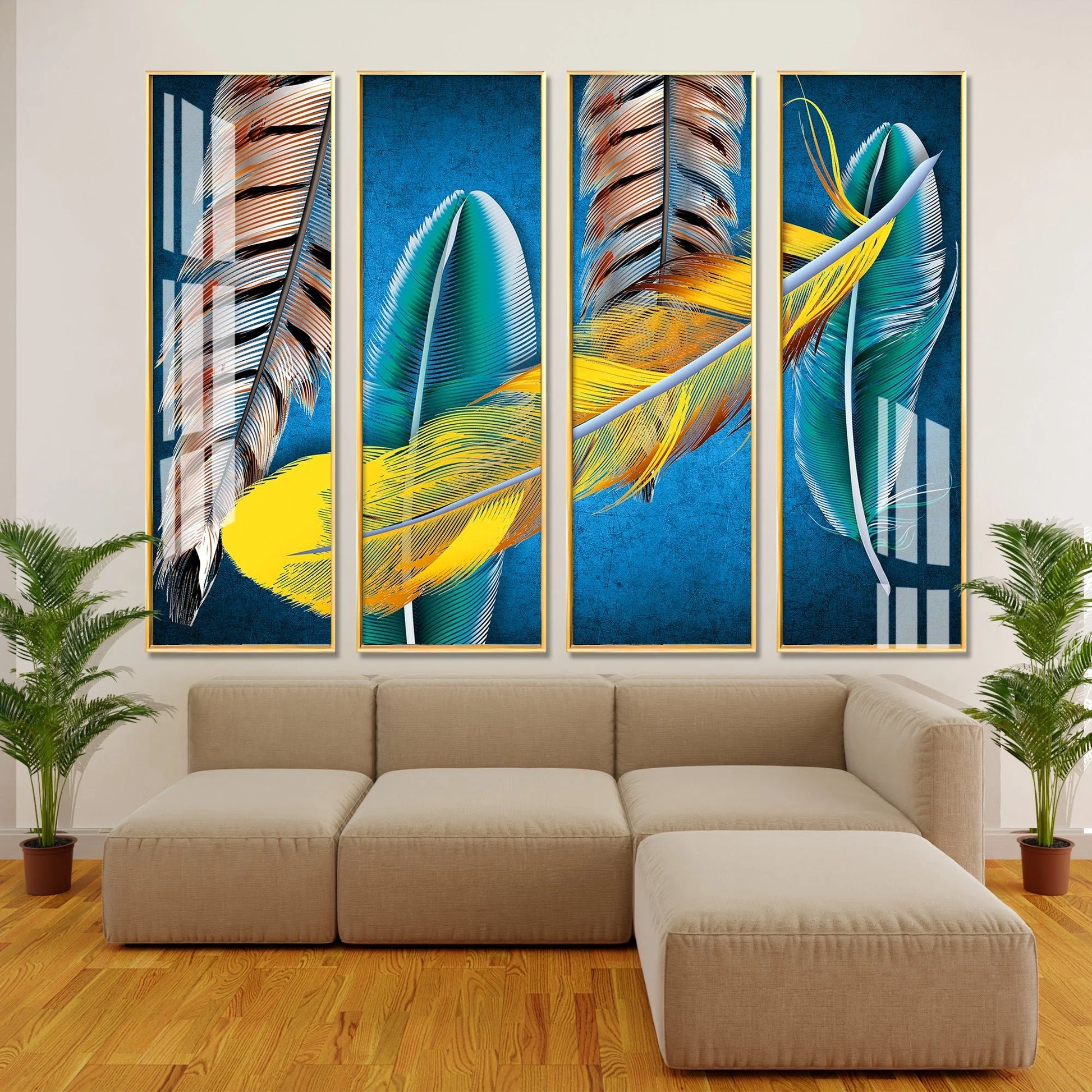 Multicolor leaves Premium Acrylic Vertical Wall Art (set of 4)