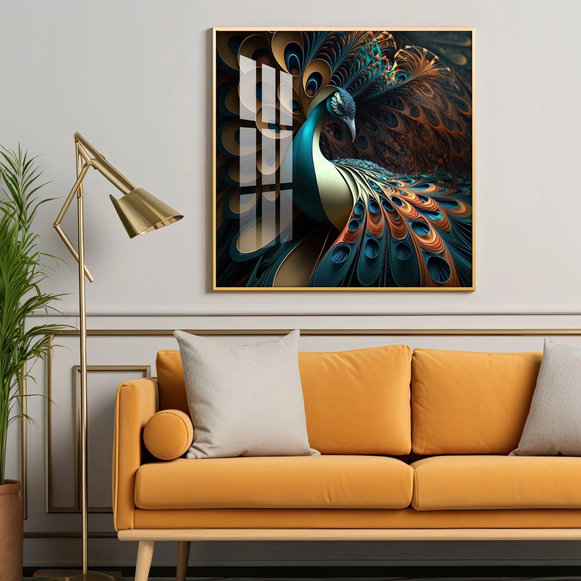 Peacock Is Shown With Large Feather Premium Acrylic Square Wall Art