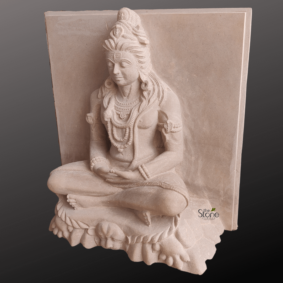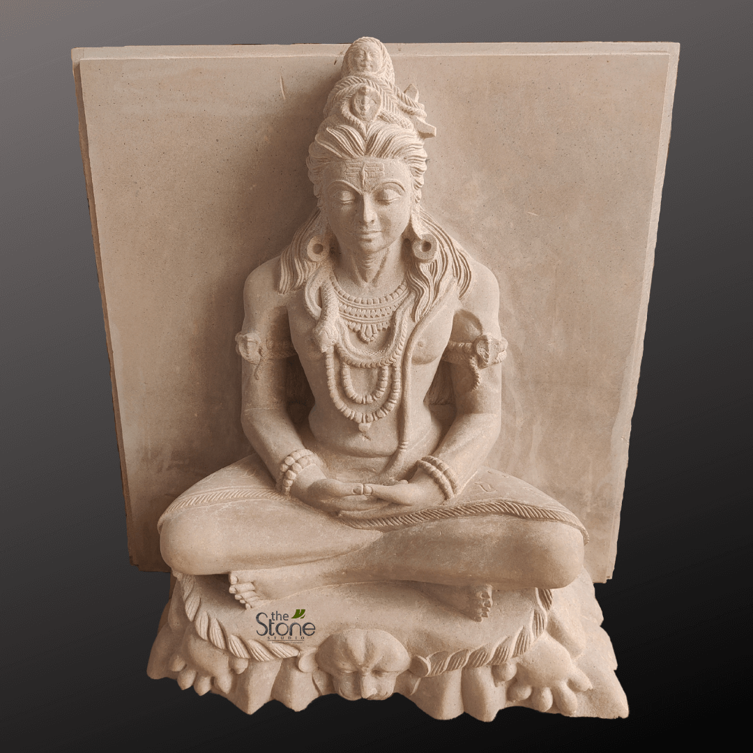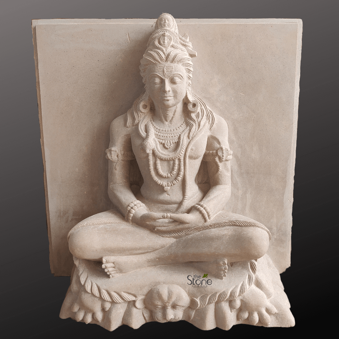 The material used in it is off-white Sand Stone. This sculpture is wonderfully crafted by our best artisans. For more such statues browse our website. If you still don’t get what you want, our artisans will craft your specified designs of Shiva wall mural with utmost care and love.