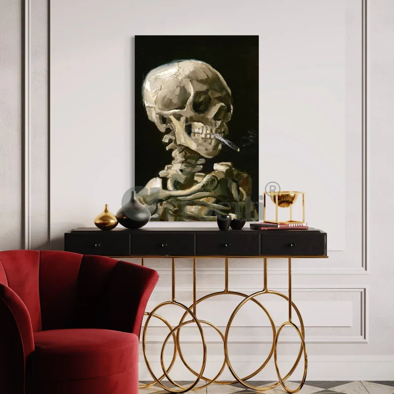 This canvas is work of renowned artist Van Gogh and the painting is one of his most famous painting "Skull of a Skeleton with Burning Cigarette". This is giclèe print of the orignal artwork.