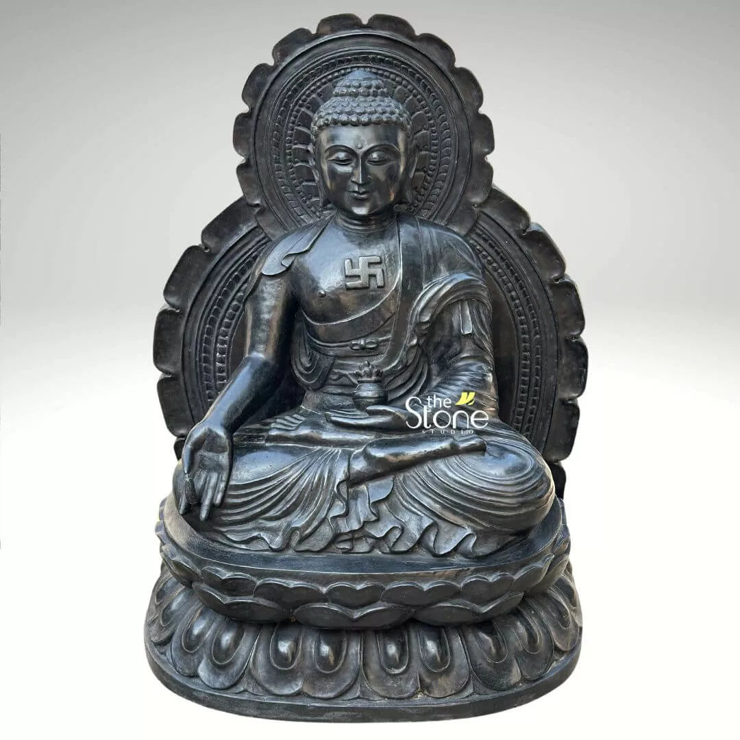 The material used in it is Blackstone. Our best artisans wonderfully craft this sculpture. For more such statues browse our website. If you still don’t get what you want, our artisans will craft your specified designs of the stone medicine Buddha statue with alms bowl with utmost care and love.