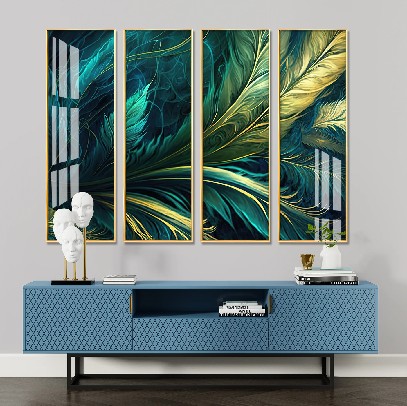 Tropical Leaves Premium Acrylic Vertical Wall Art (set of 4)